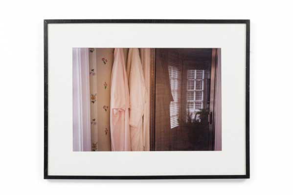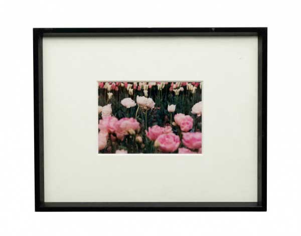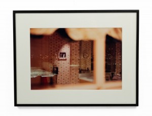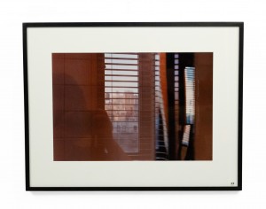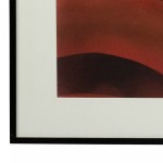 Color photograph in a black frame of red abstract shapes. Photograph by Shelley Harrison.