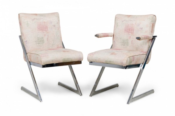 Style: Mid-Century Materials & Techniques: Chrome, fabric, metal, upholstered Category: Seating Condition: Upholstery is stained. Good; Wear consistent with age and use