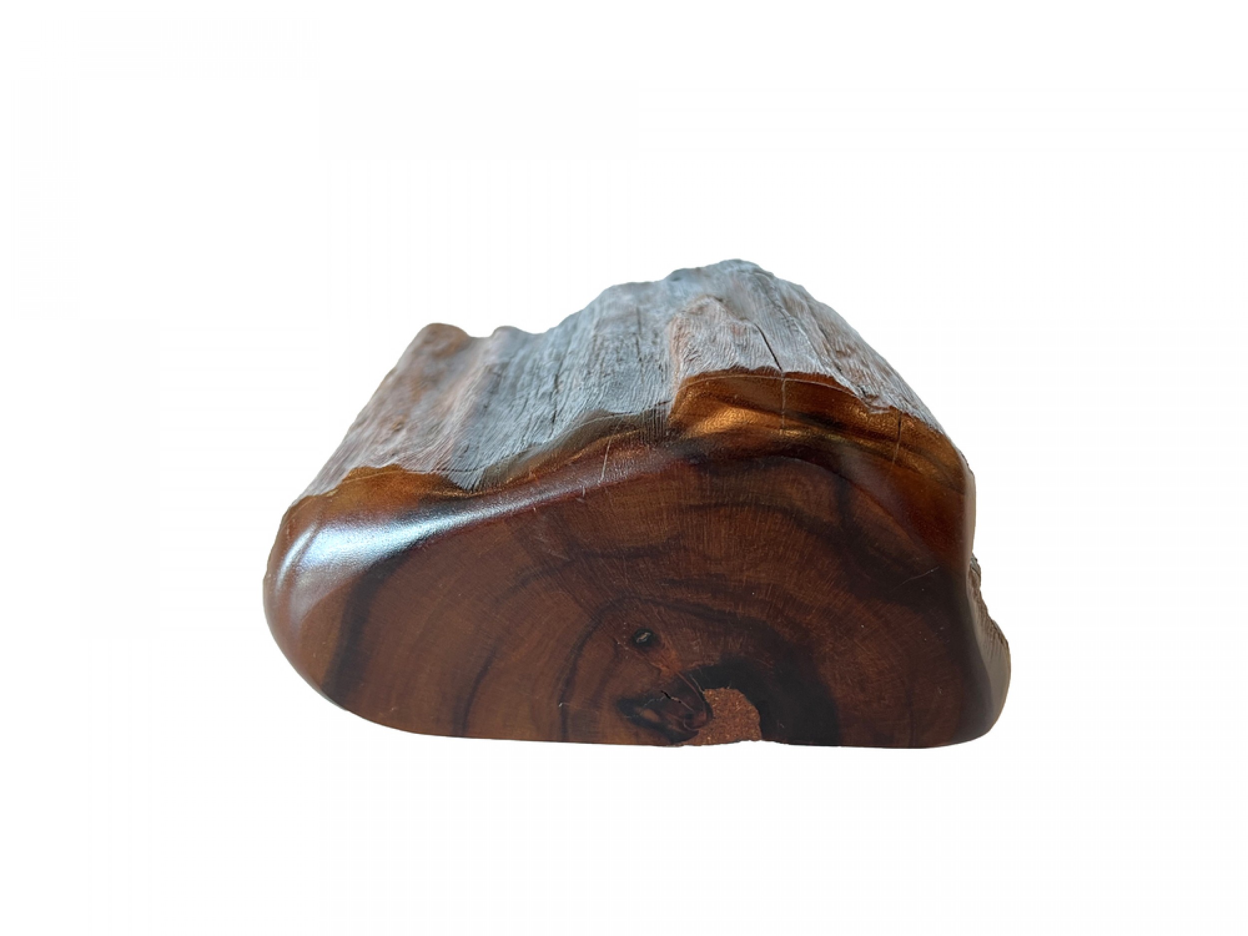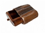 Mid-Century Rustic organic form jacaranda wood jewelry box with a bark exterior, and single drawer with wooden pull. (DON SHOEMAKER)