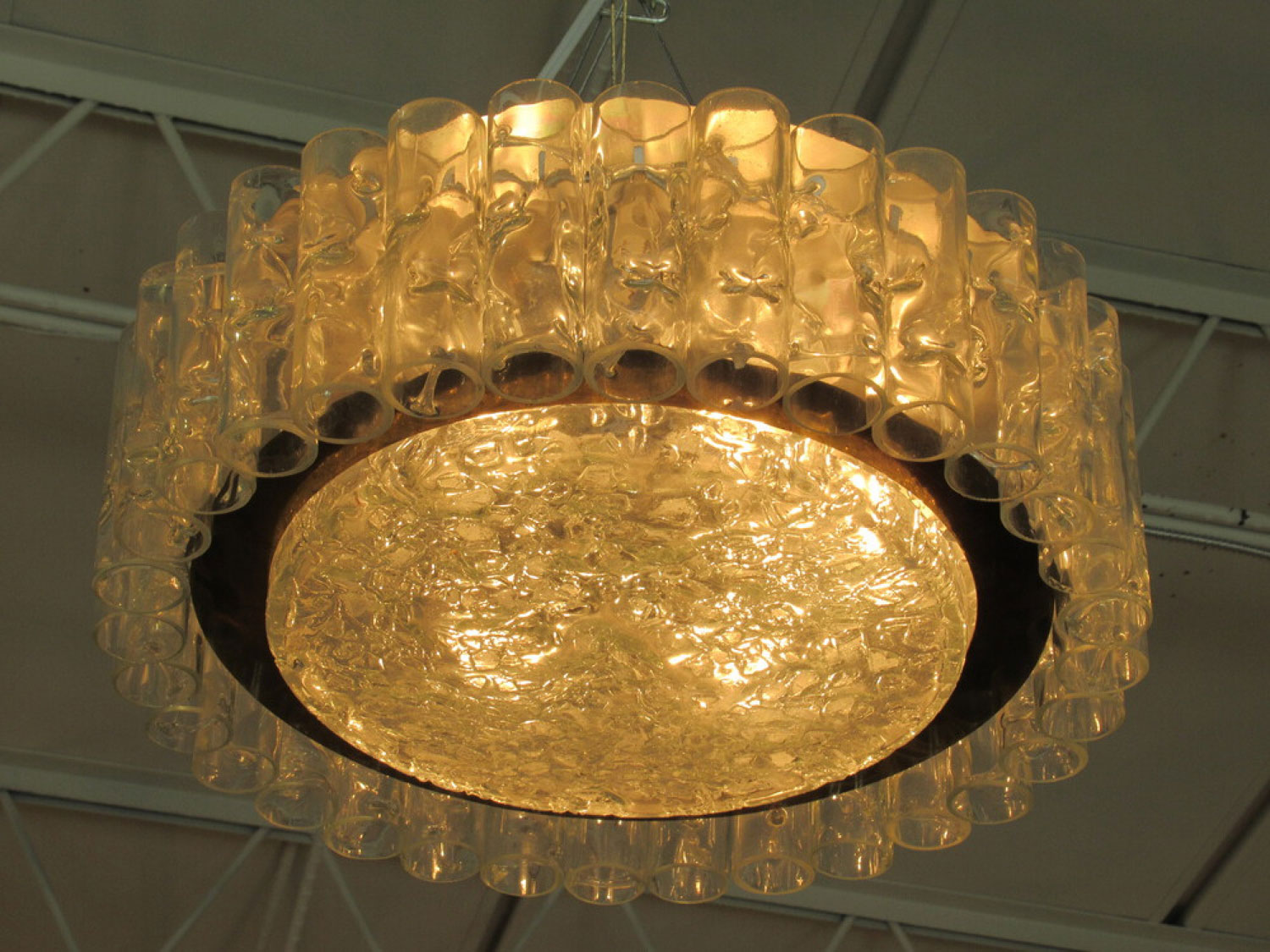 Doria Leuchten German Mid-Century Modern Hand Blown Glass and Brass Chandelier