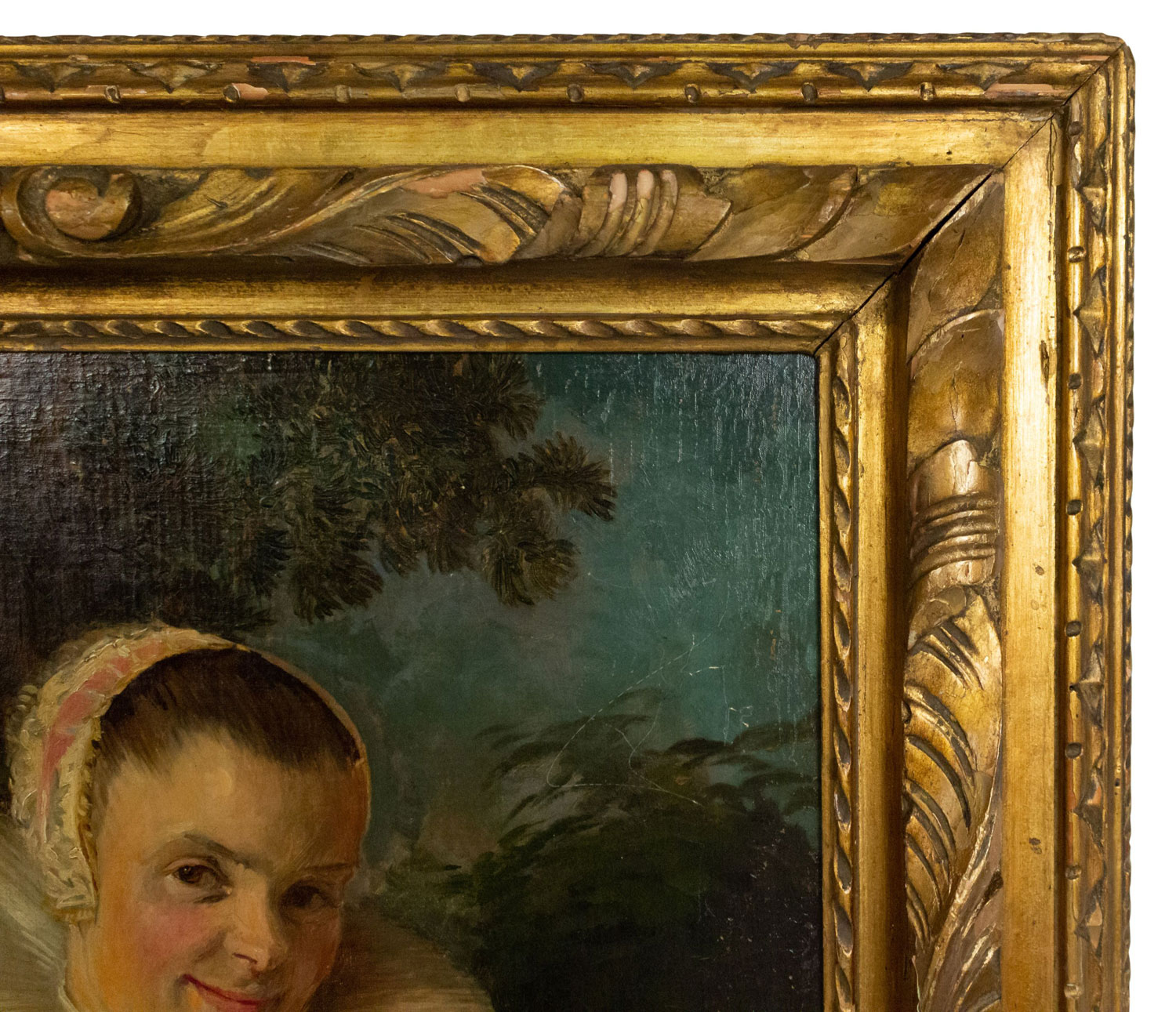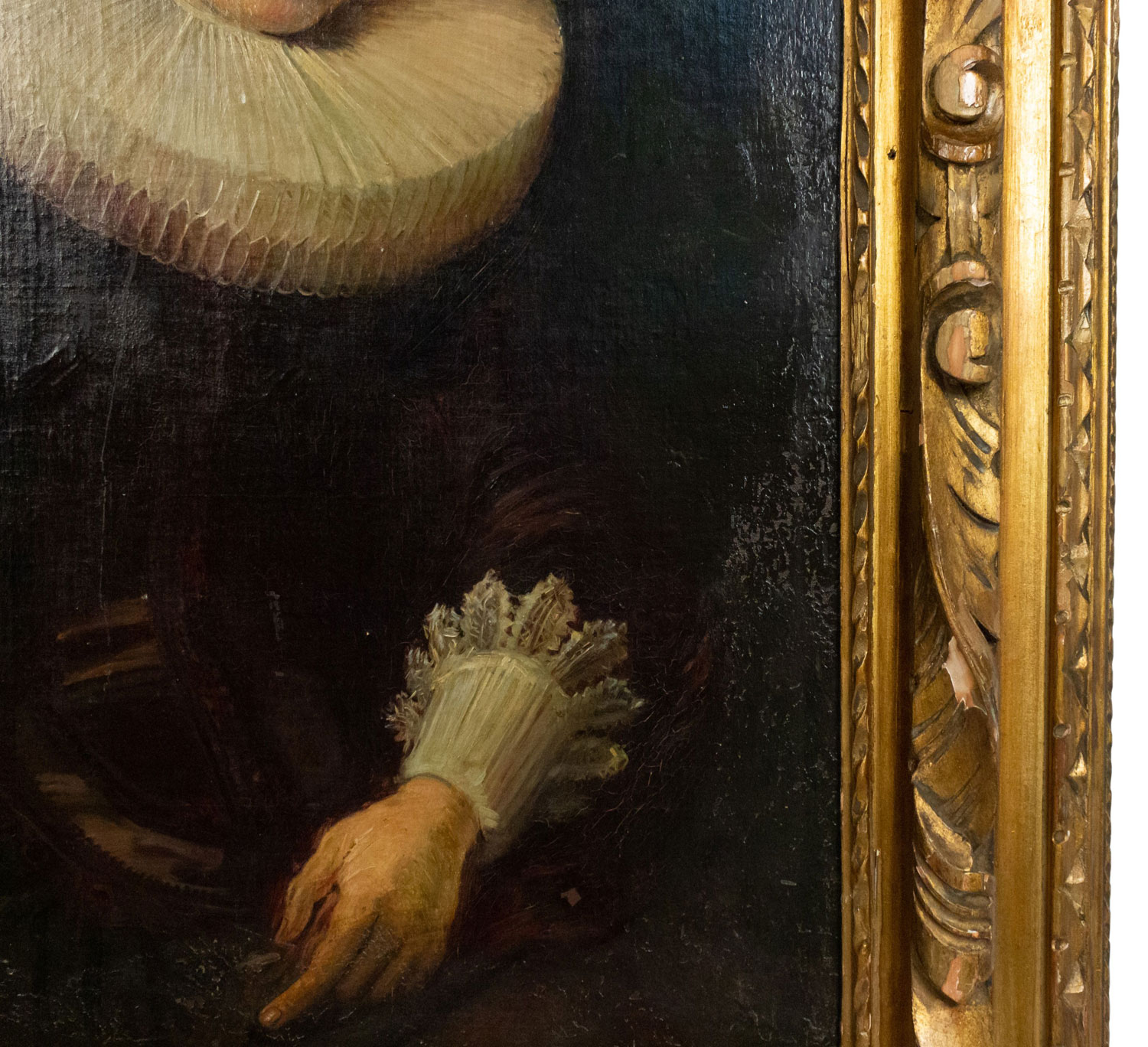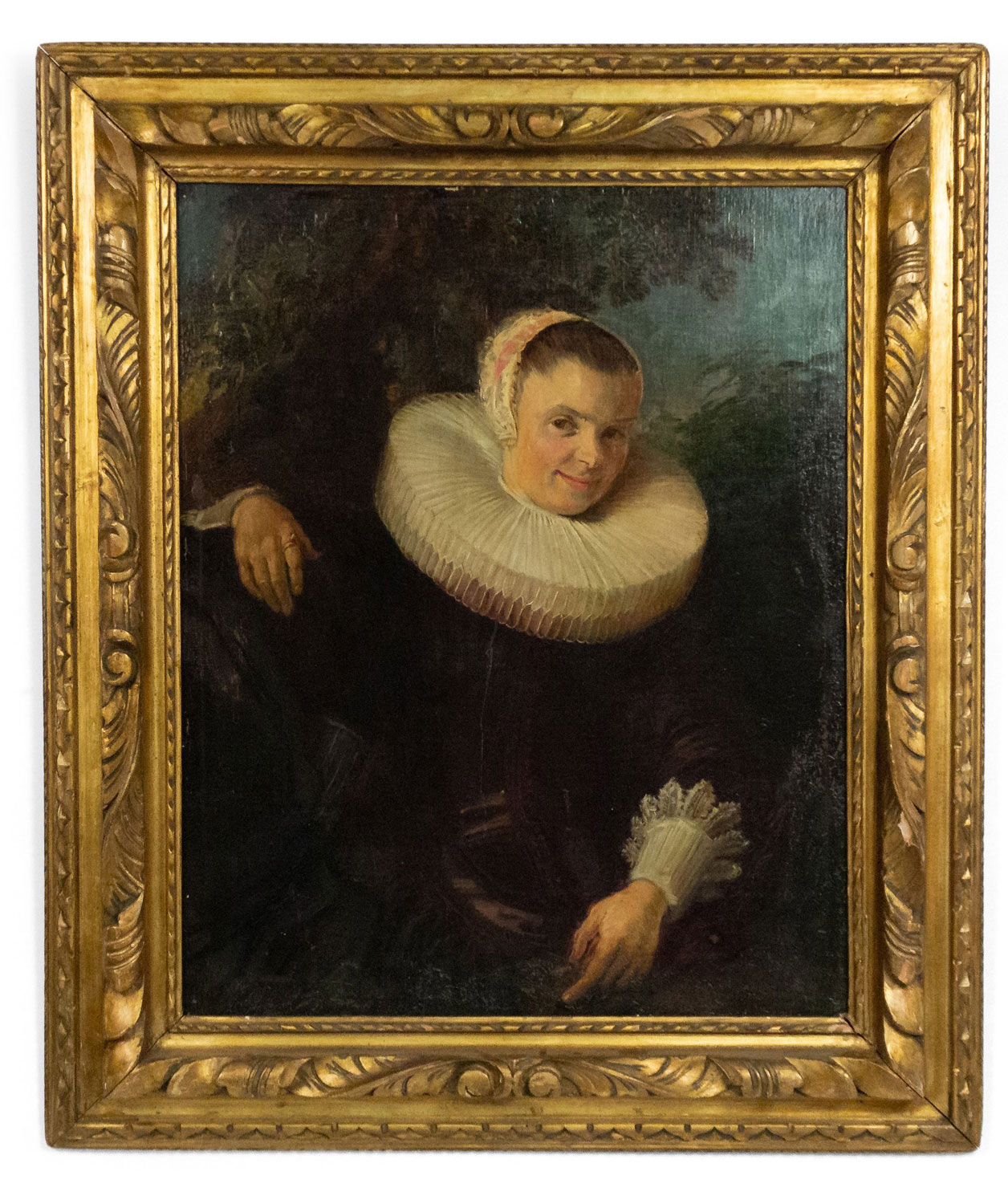 Dutch style (20th Cent) gilt framed oil painting portrait of lady wearing bonnet and lace cuffs (Franz Hals mother).