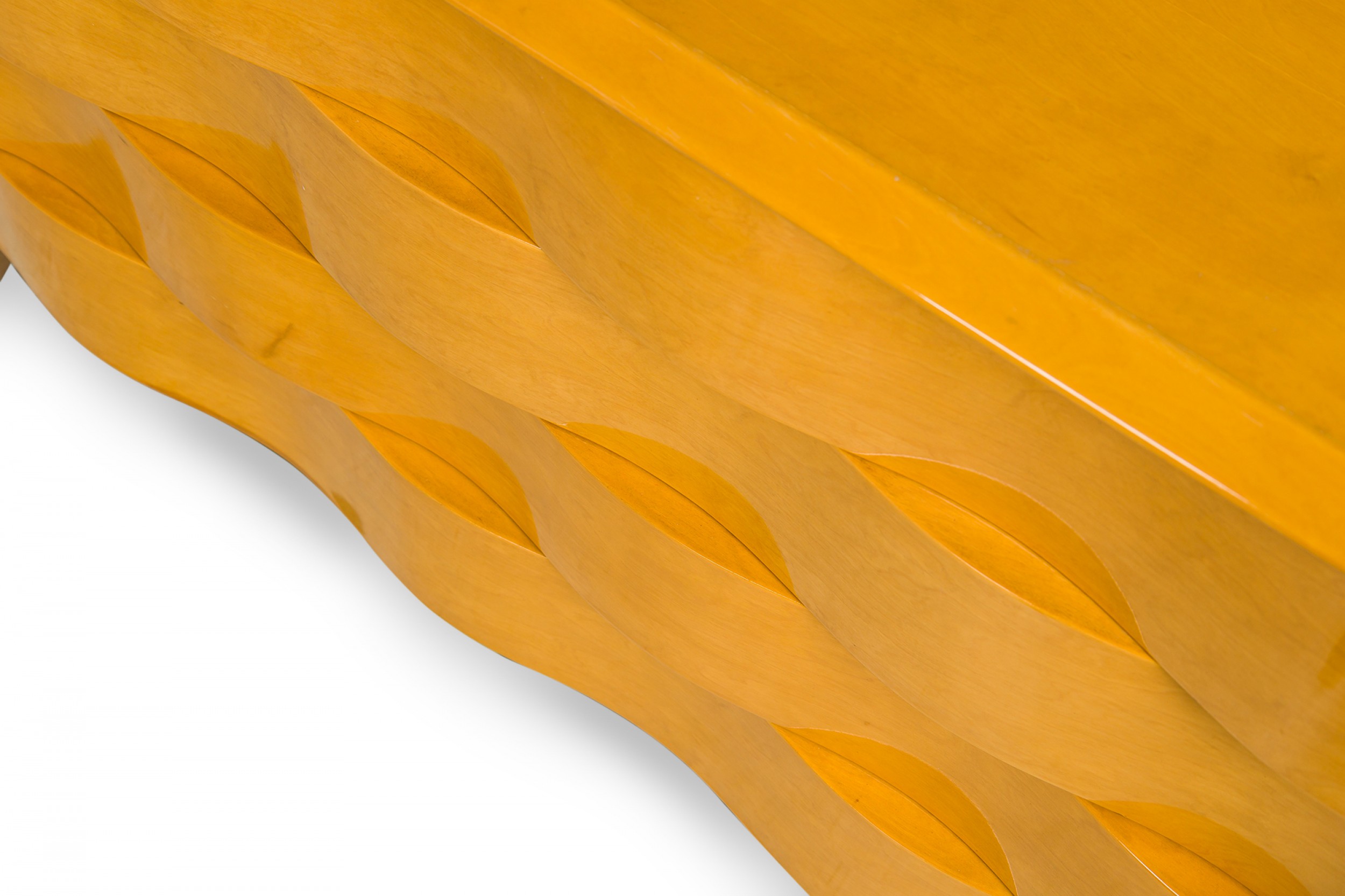 Swedish Mid-Century (1940s) burled birch rectangular chest featuring 4 undulating wavefront pullout drawers, resting on 4 short, tapered splayed legs. (EDMOND J. SPENCE)