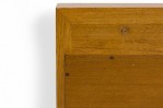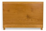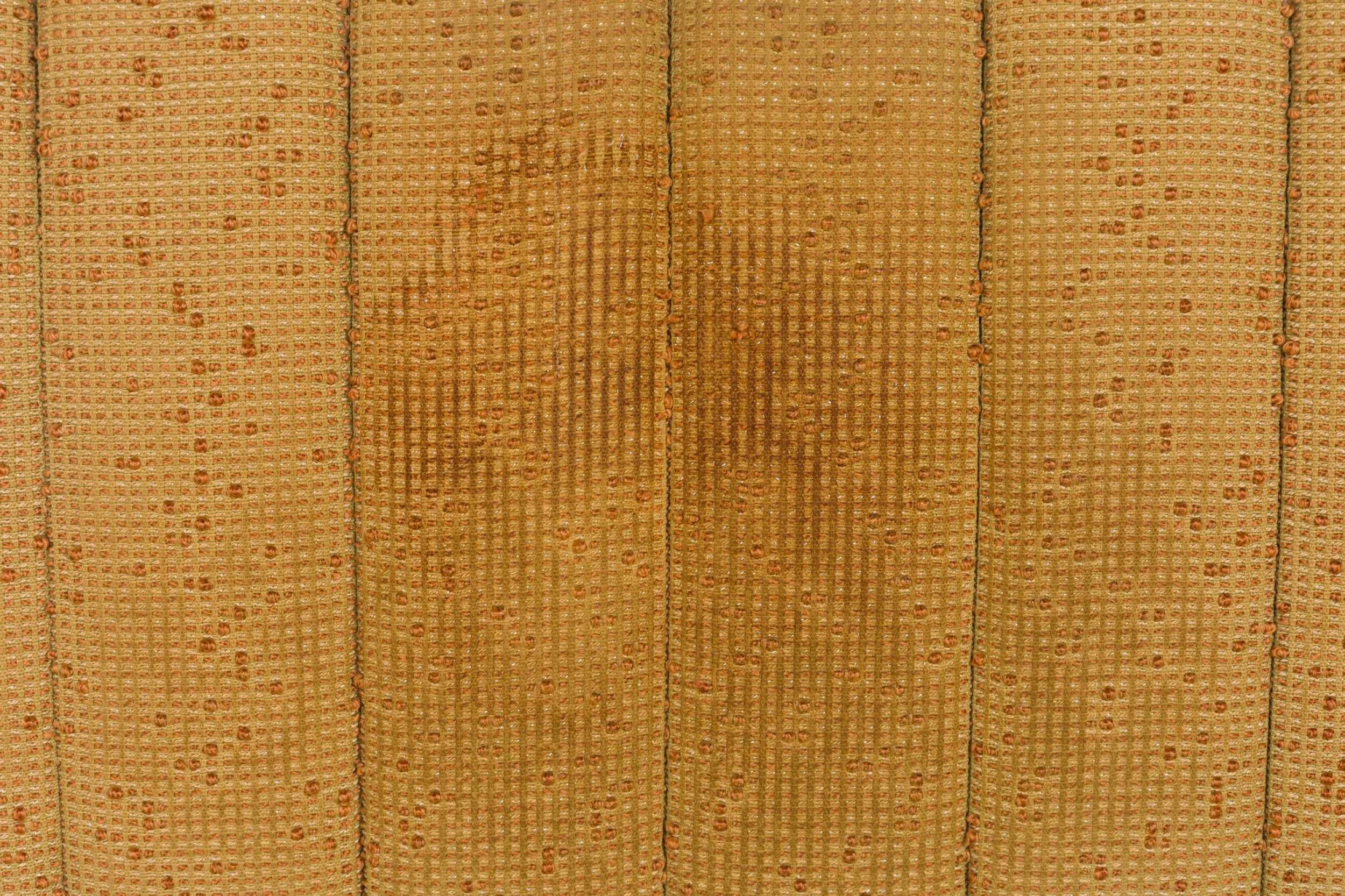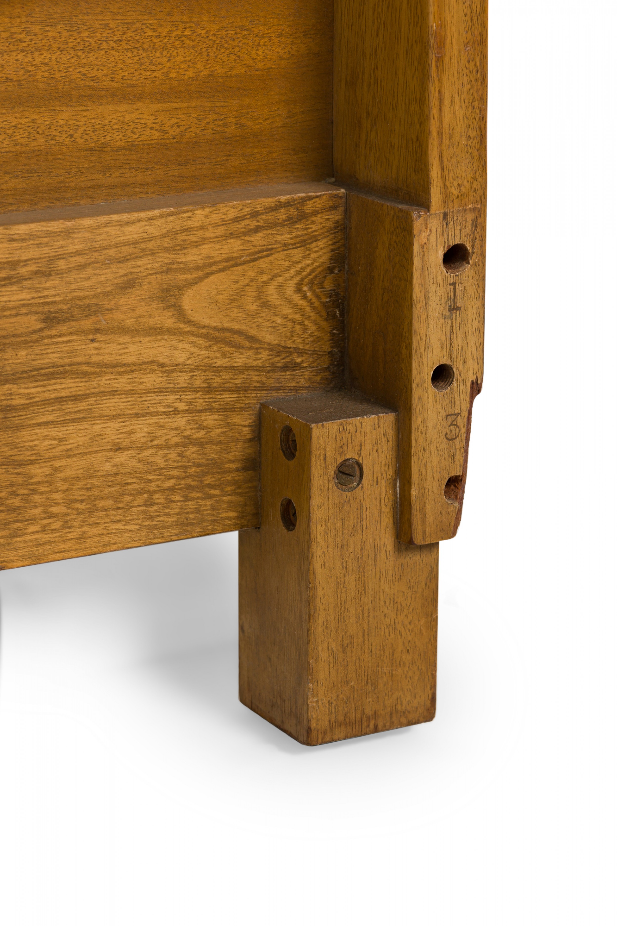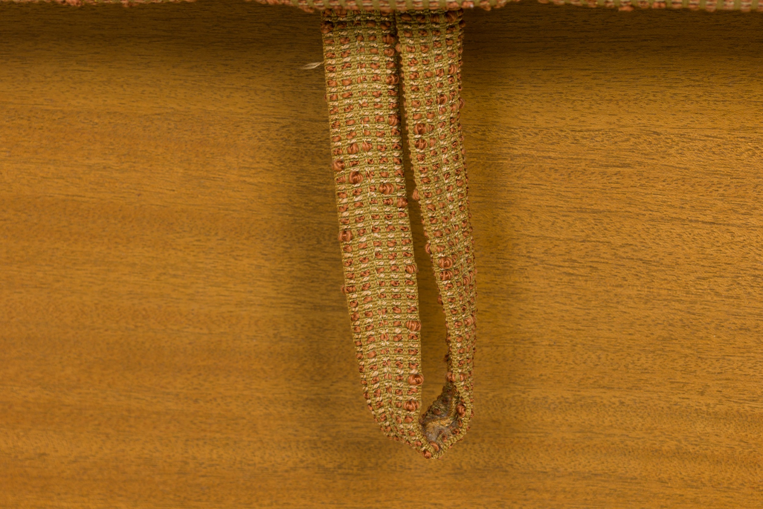Style: Mid-Century Materials & Techniques: Fabric, upholstered, wood Category: Bedroom Condition: Large stain on one side of upholstered back panel. Good; Minor fading