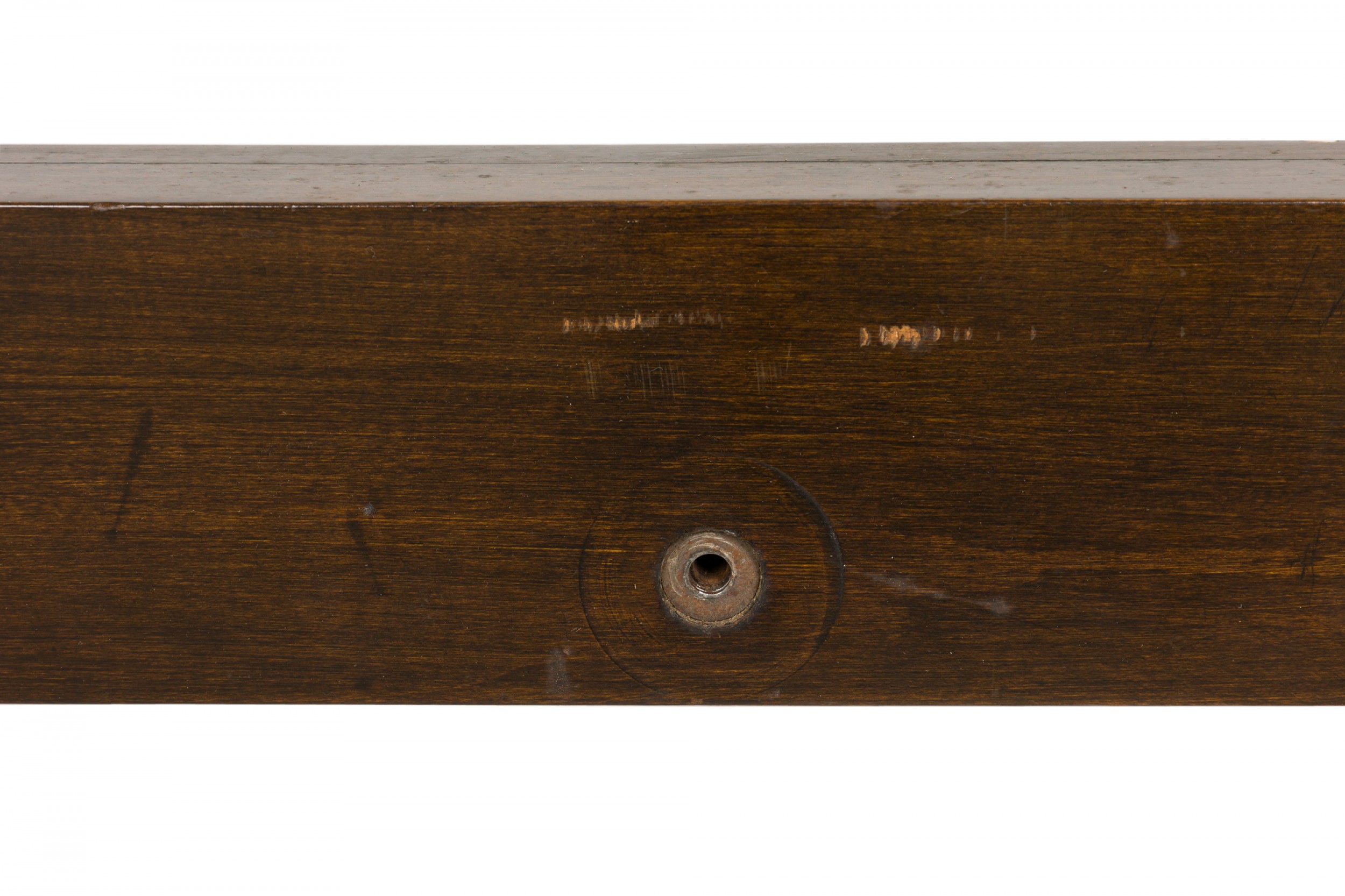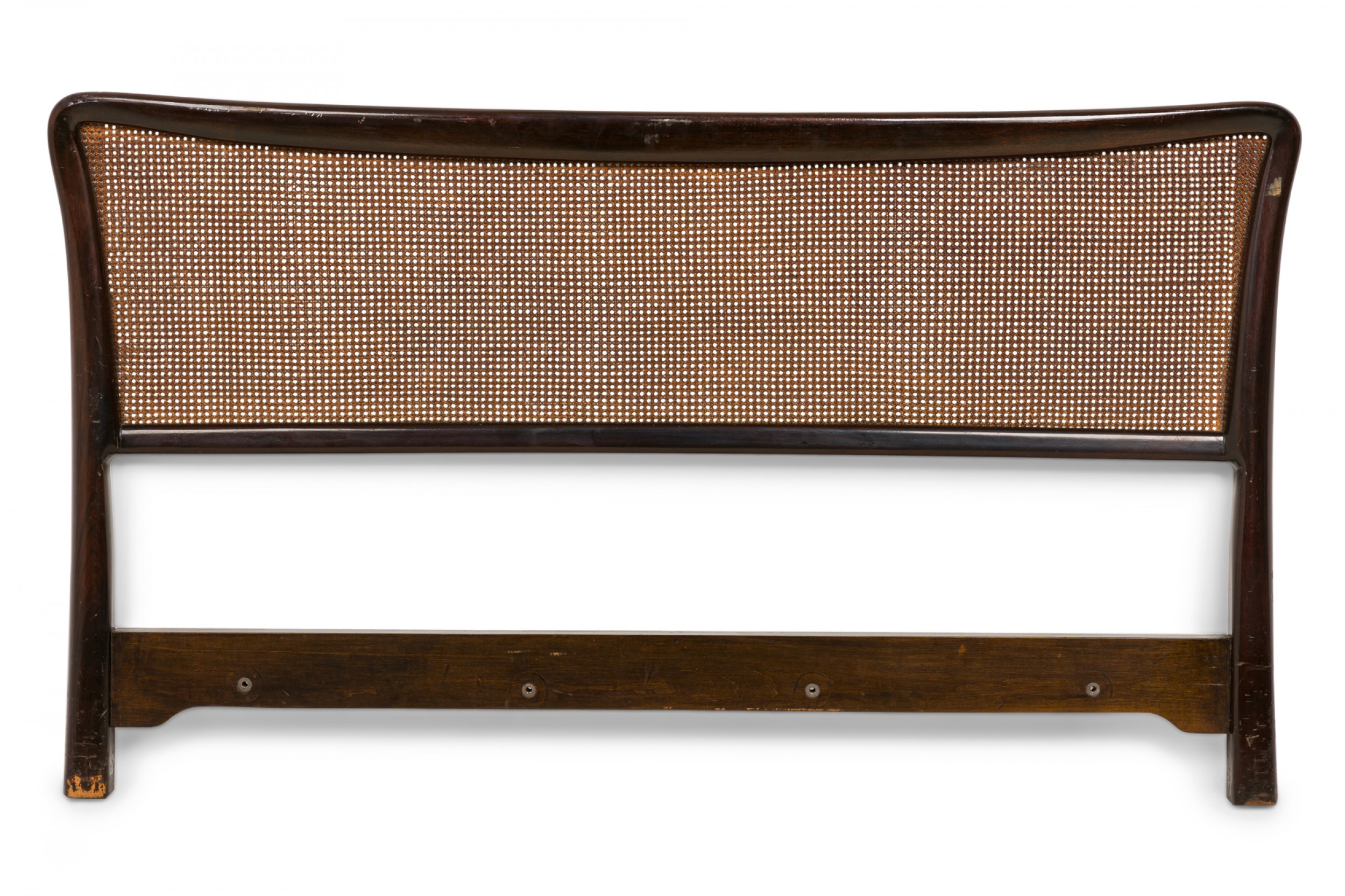American Mid-Century full-sized headboard with a dark stained wooden frame with curved top rail and central caned panel. (EDWARD WORMLEY FOR DUNBAR FURNITURE COMPANY)