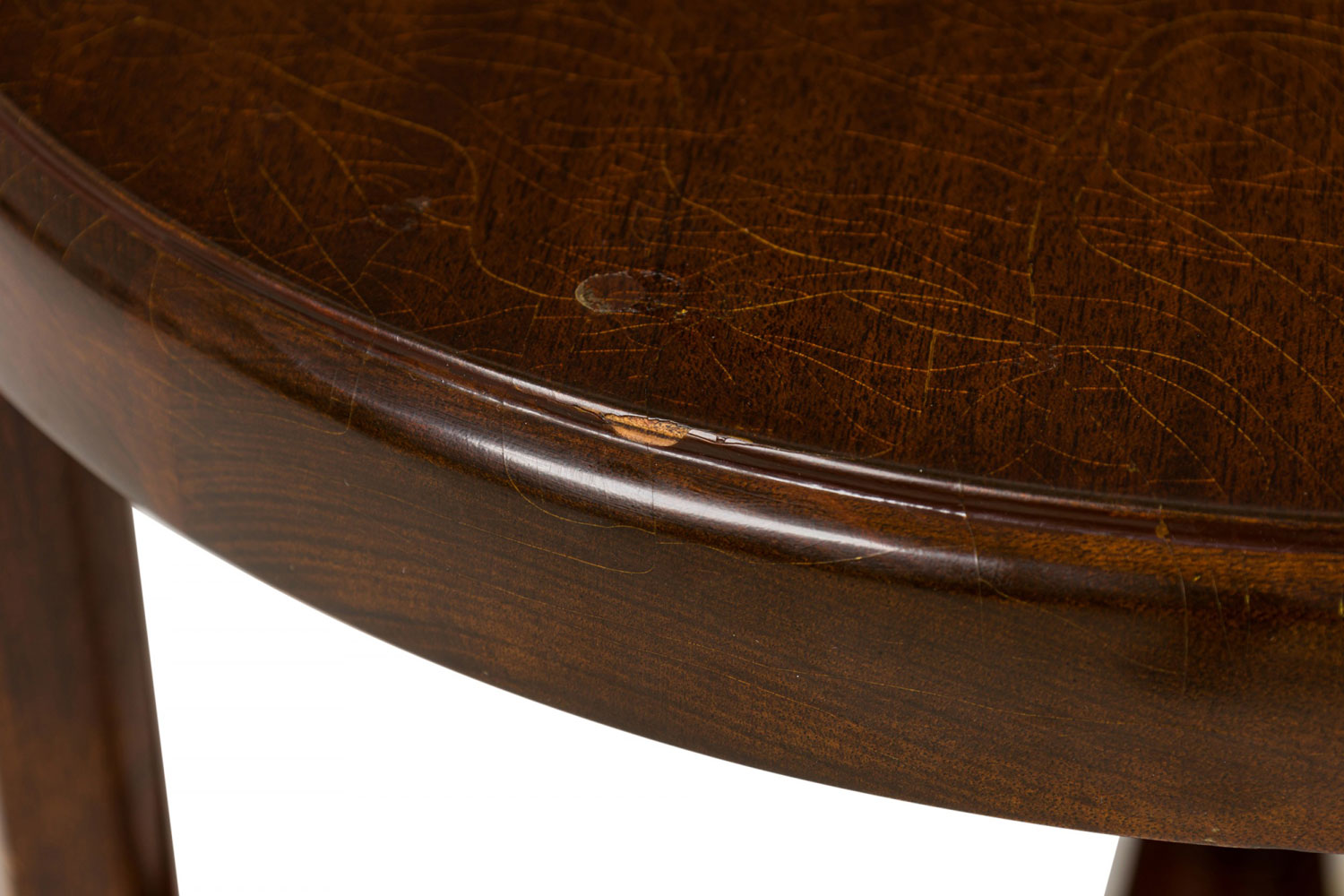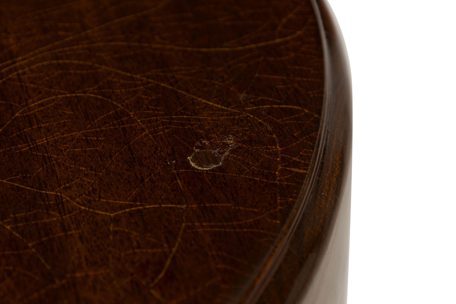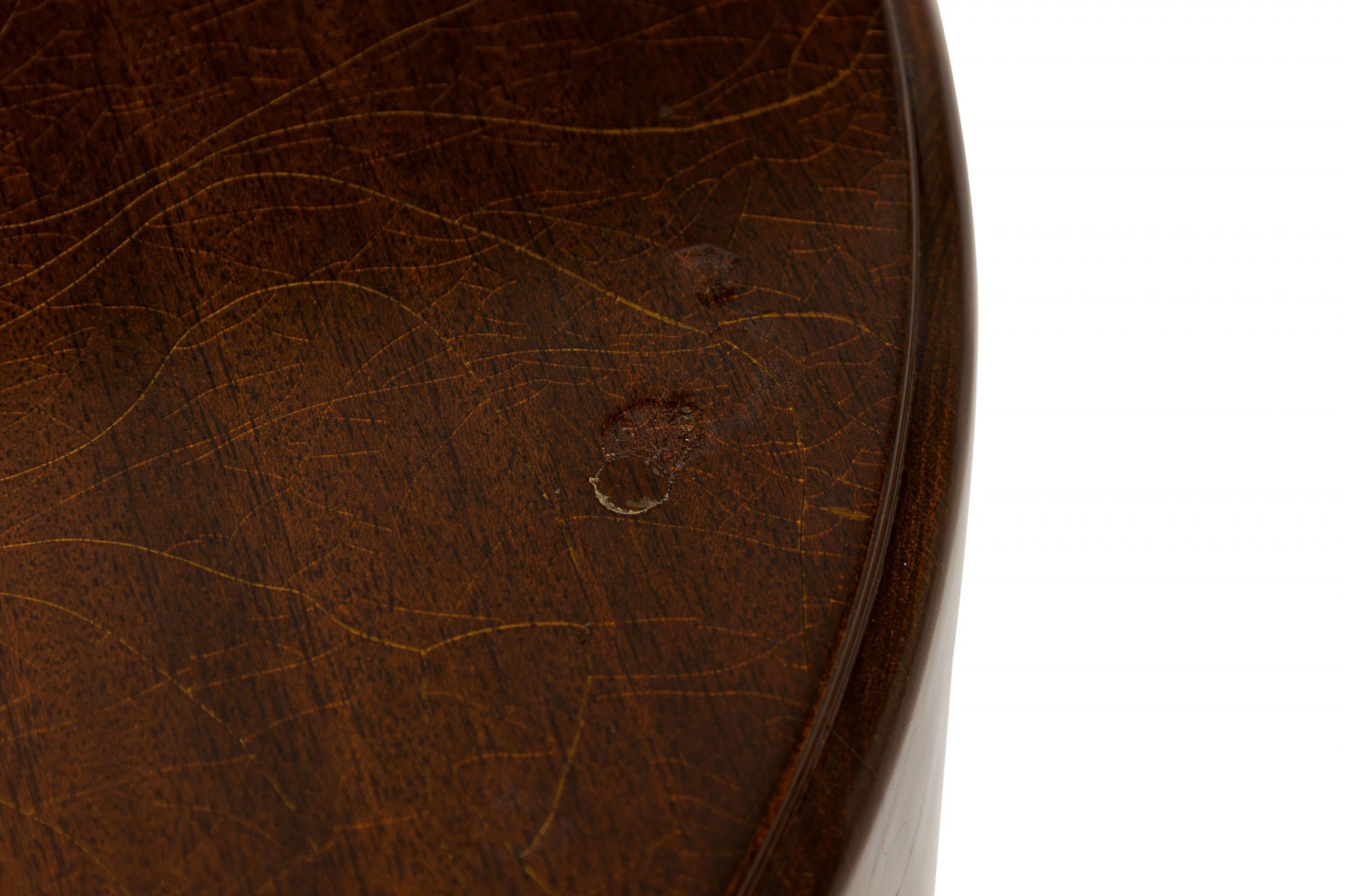 Style: Mid-Century Materials & Techniques: Wood Category: Tables Condition: Wear to finish, cracks in top. Good; Wear consistent with age and use