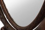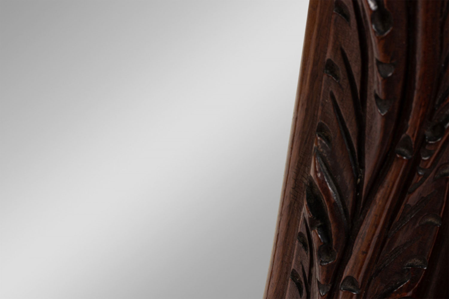 Style: American Materials & Techniques: Carved, mahogany, wood Category: Mirrors, Bedroom Condition: Light wear, cracking on frame, patina on mirror glass.