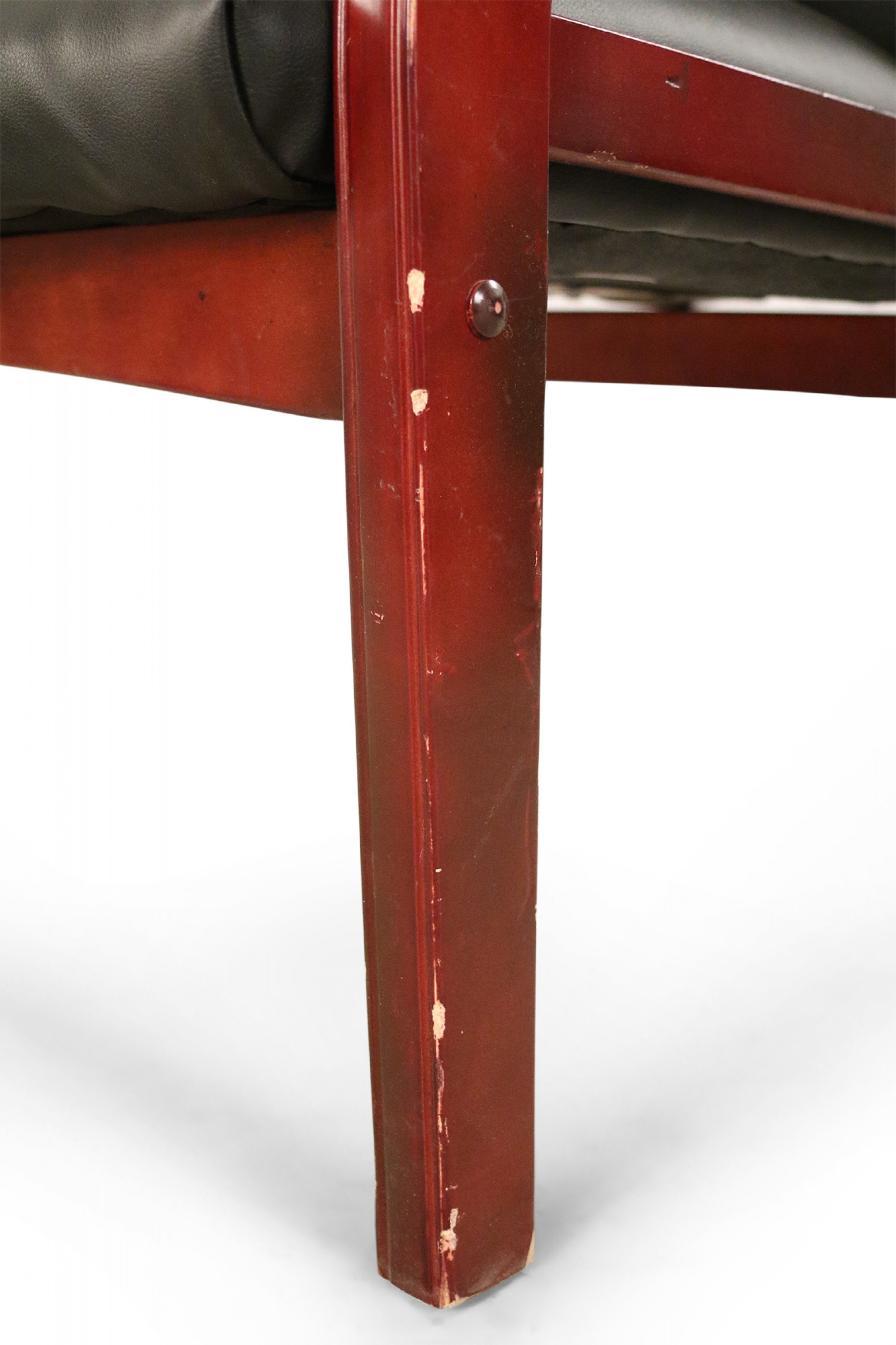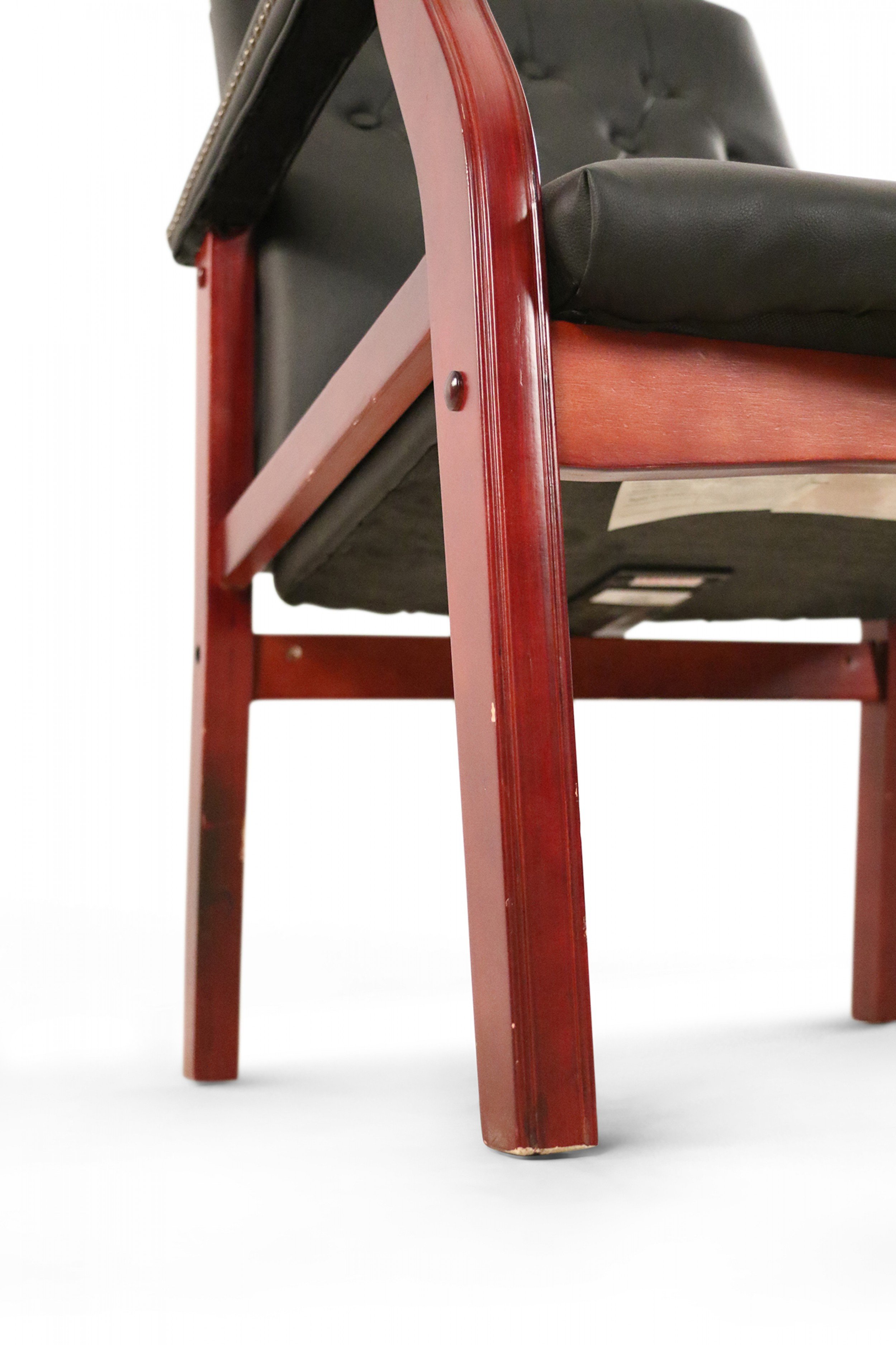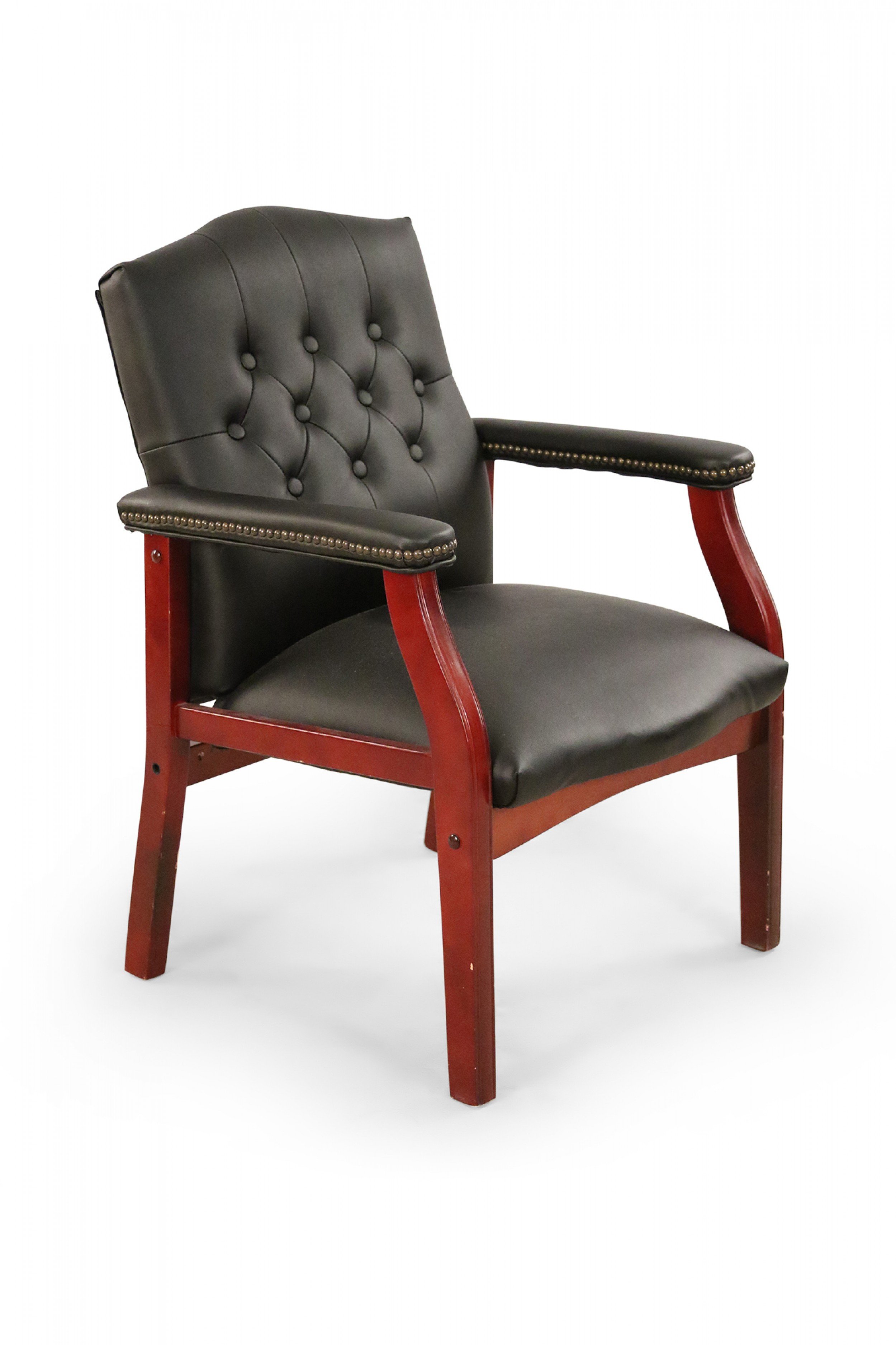 SET of 6 English Georgian-style (modern) black button-tufted leather armchairs with wooden frames and padded arm rests (PRICED AS SET).