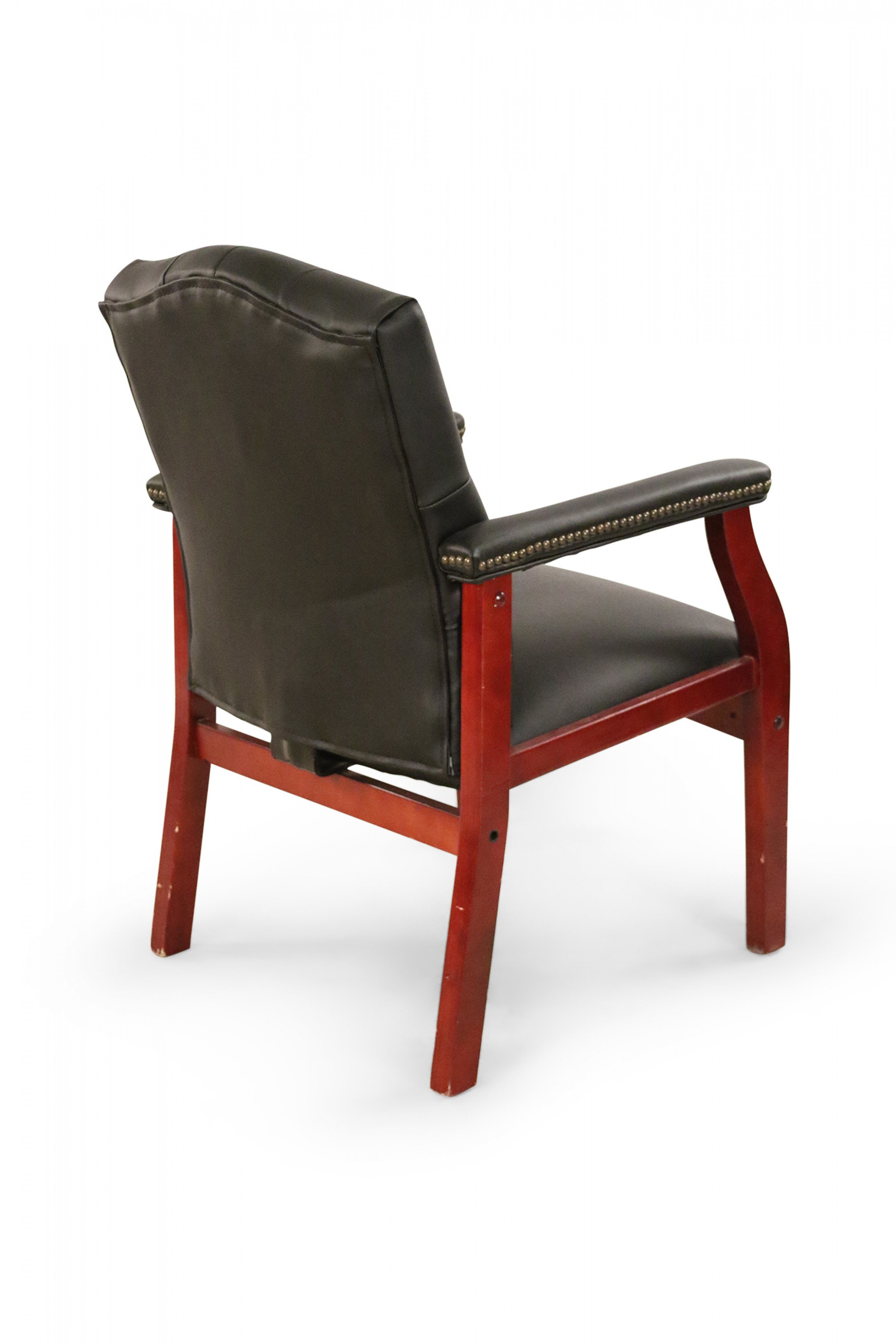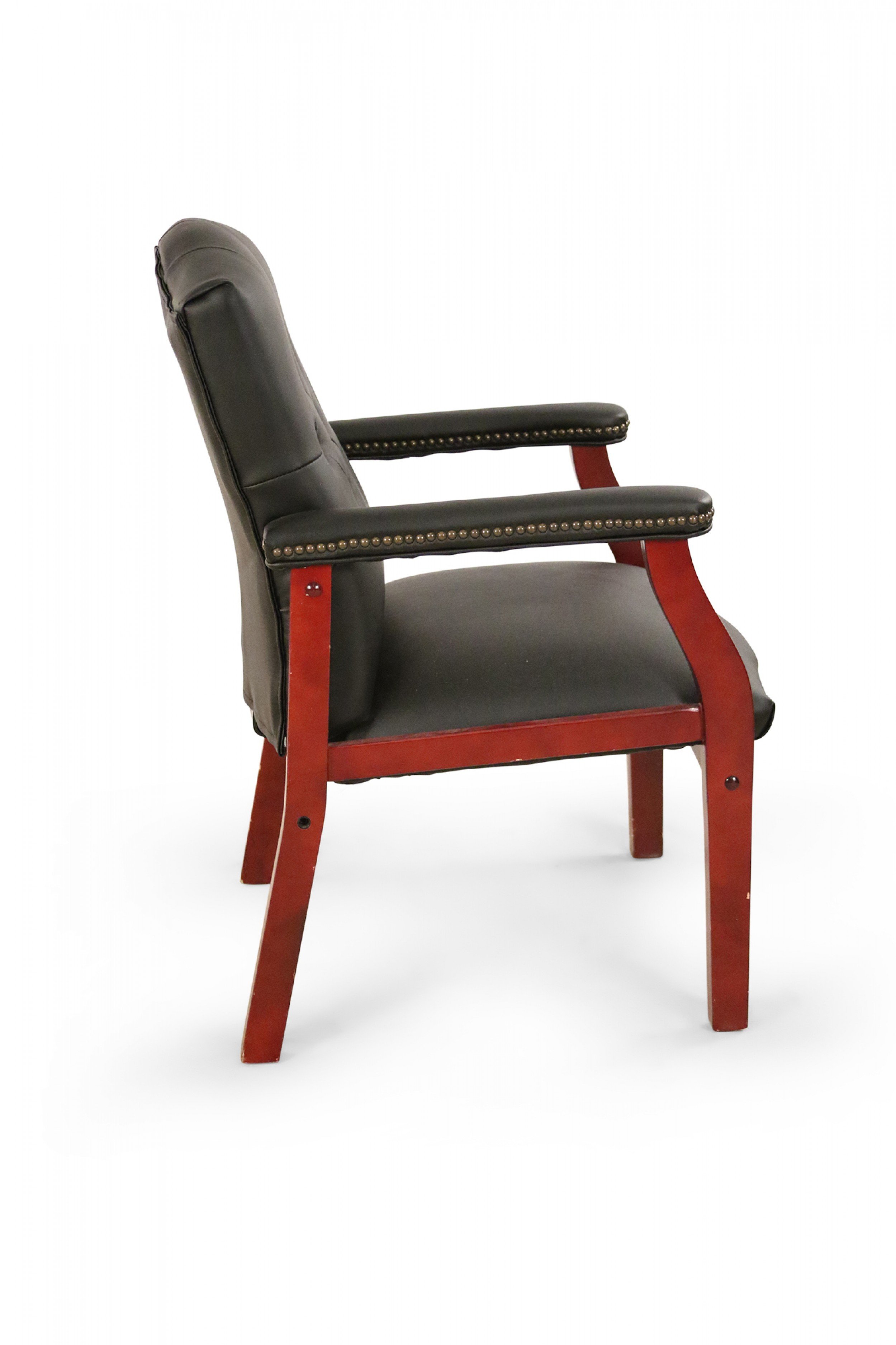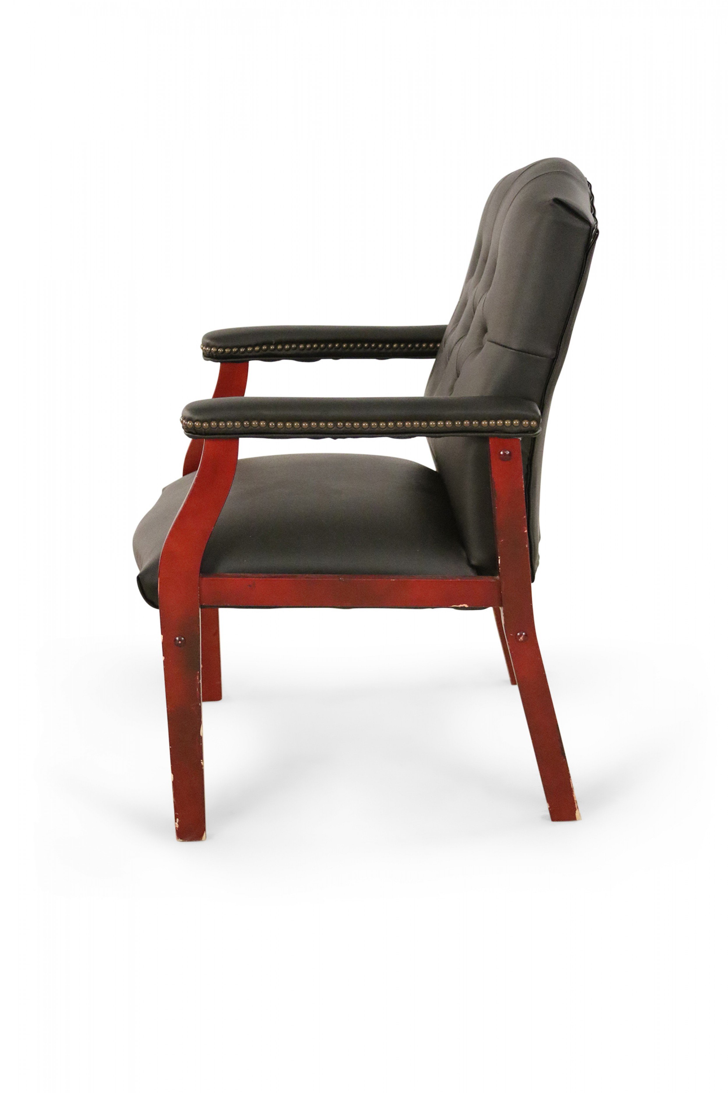 Set of 6 English Georgian Style Black Tufted Faux Leather Conference/Armchairs