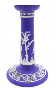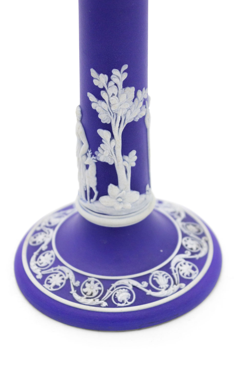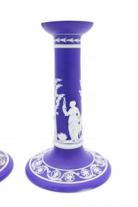 Pair of English Adam Blue Wedgwood Porcelain Candlesticks