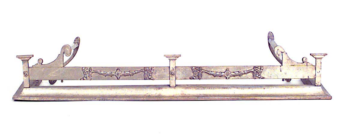 English Adam-style (19/20th Century) brass fire fender with scroll and festoon design..