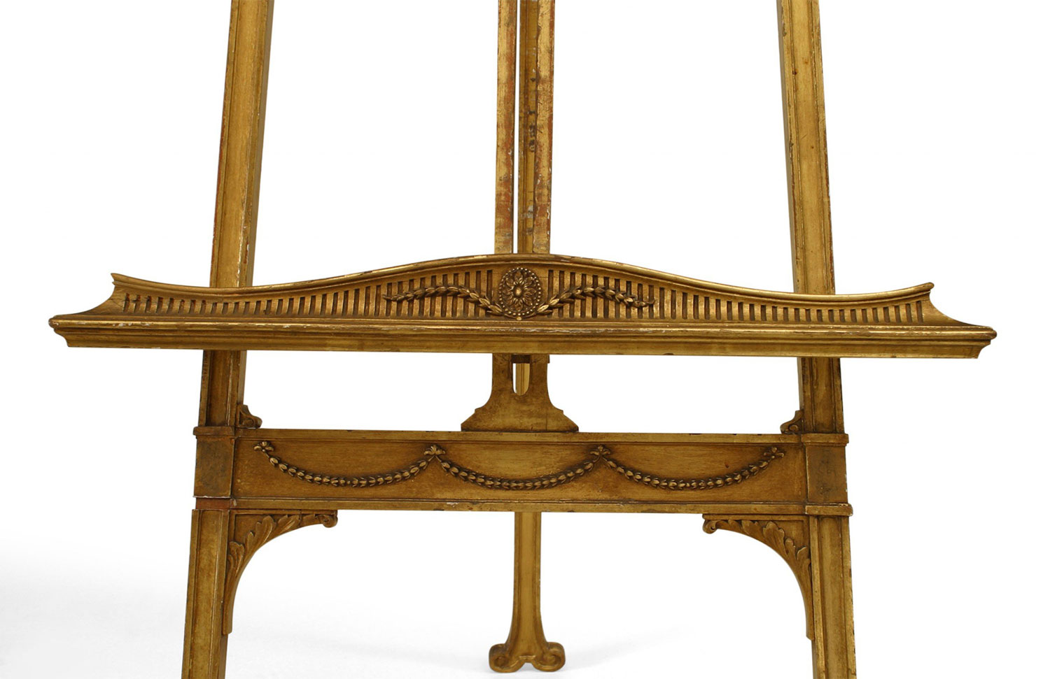 English Adam style (19th Cent) gilt easel stand with carved swag and plume top.