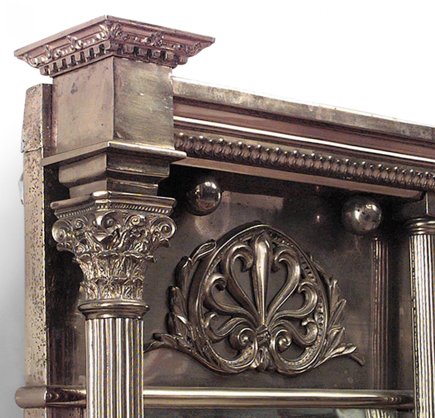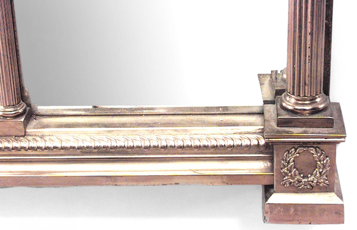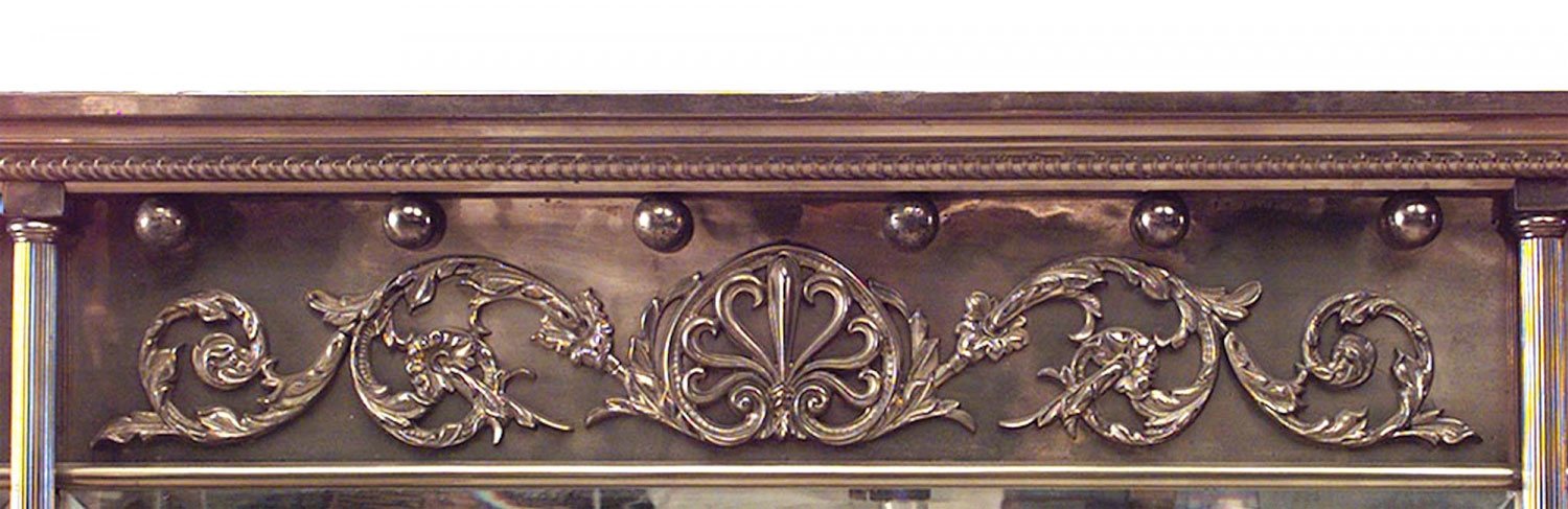 English Adam-style (19th Century) brass horizontal three-panel wall mirror with column design..