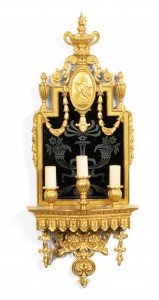 English Adam Style Bronze Dore and Black Glass Wall Sconce