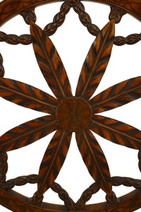 SET of 8 English Adam style (19th Century) satinwood chairs with carved open wheel back design and beige upholstered seat (2 arm chairs, 6 side chairs)