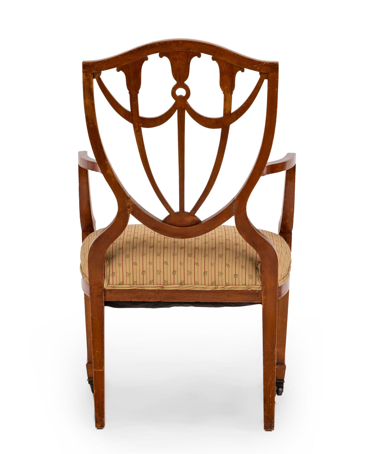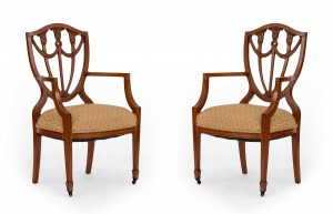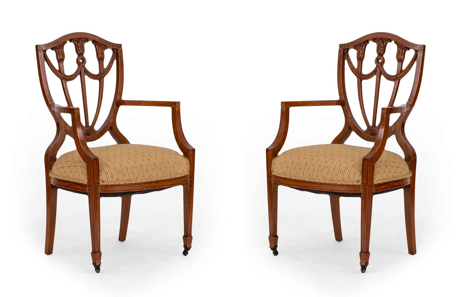 PAIR of English Adam style satinwood shield-back Armchairs. (Related item: 030011A)
