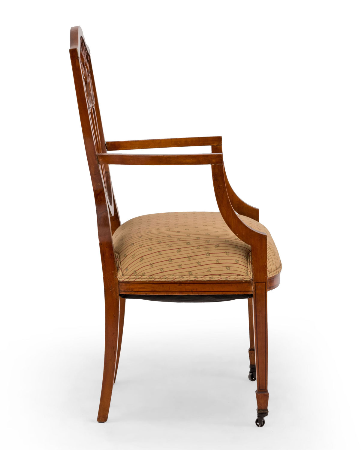 PAIR of English Adam style satinwood shield-back Armchairs. (Related item: 030011A).