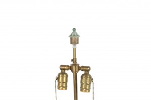 Style: English Materials & Techniques: Porcelain, wood Category: Lighting Condition: Ships without a shade/Visible repair to one glued handle.