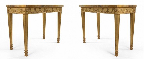 Style: English Materials & Techniques: Painted, veneer, wood Category: Tables, Dining Room Condition: Loss to veneer on front edge, joints slightly loose. Good; Minor losses