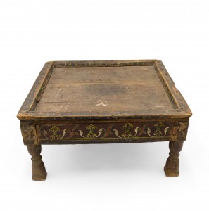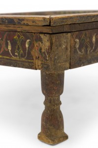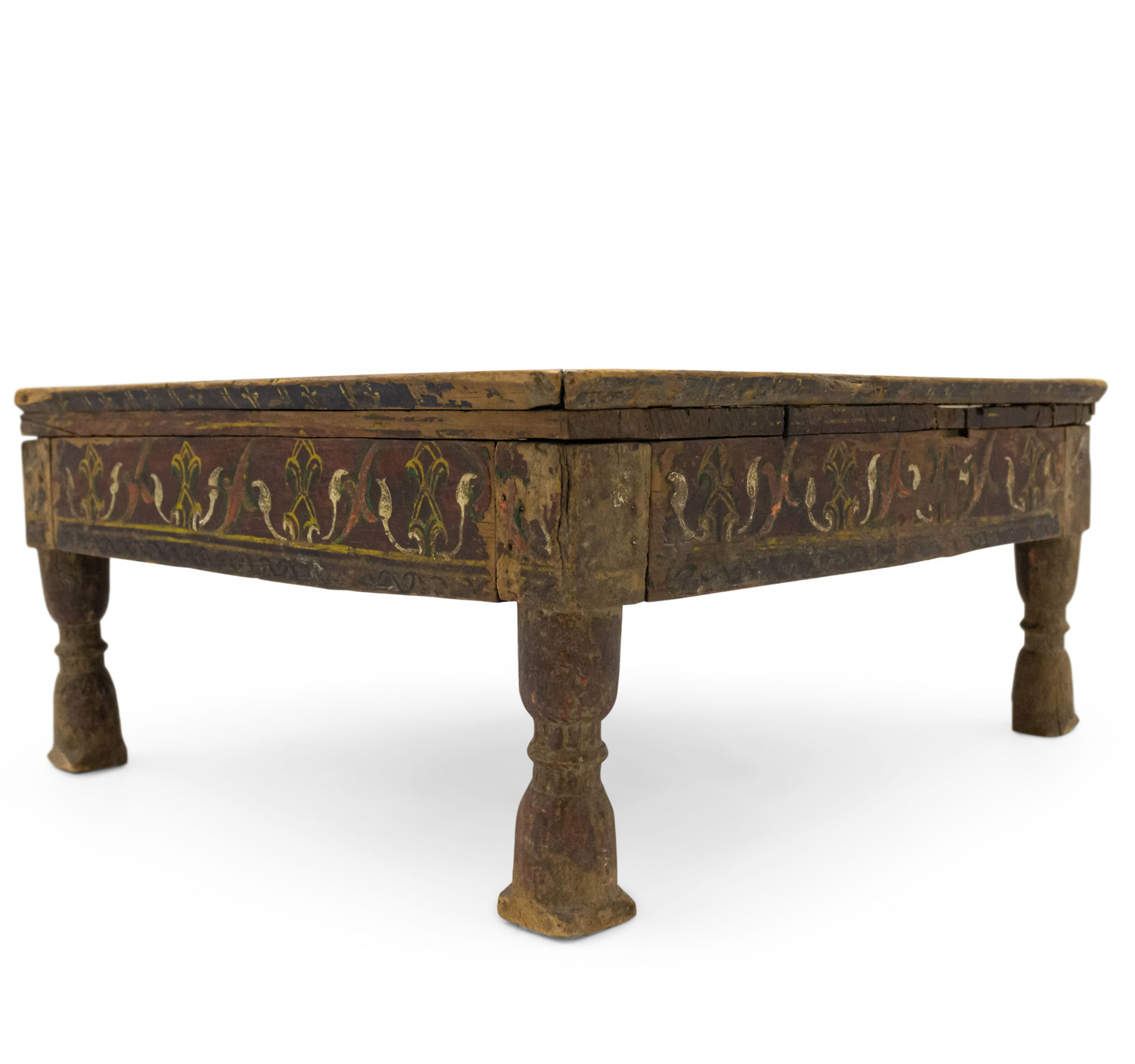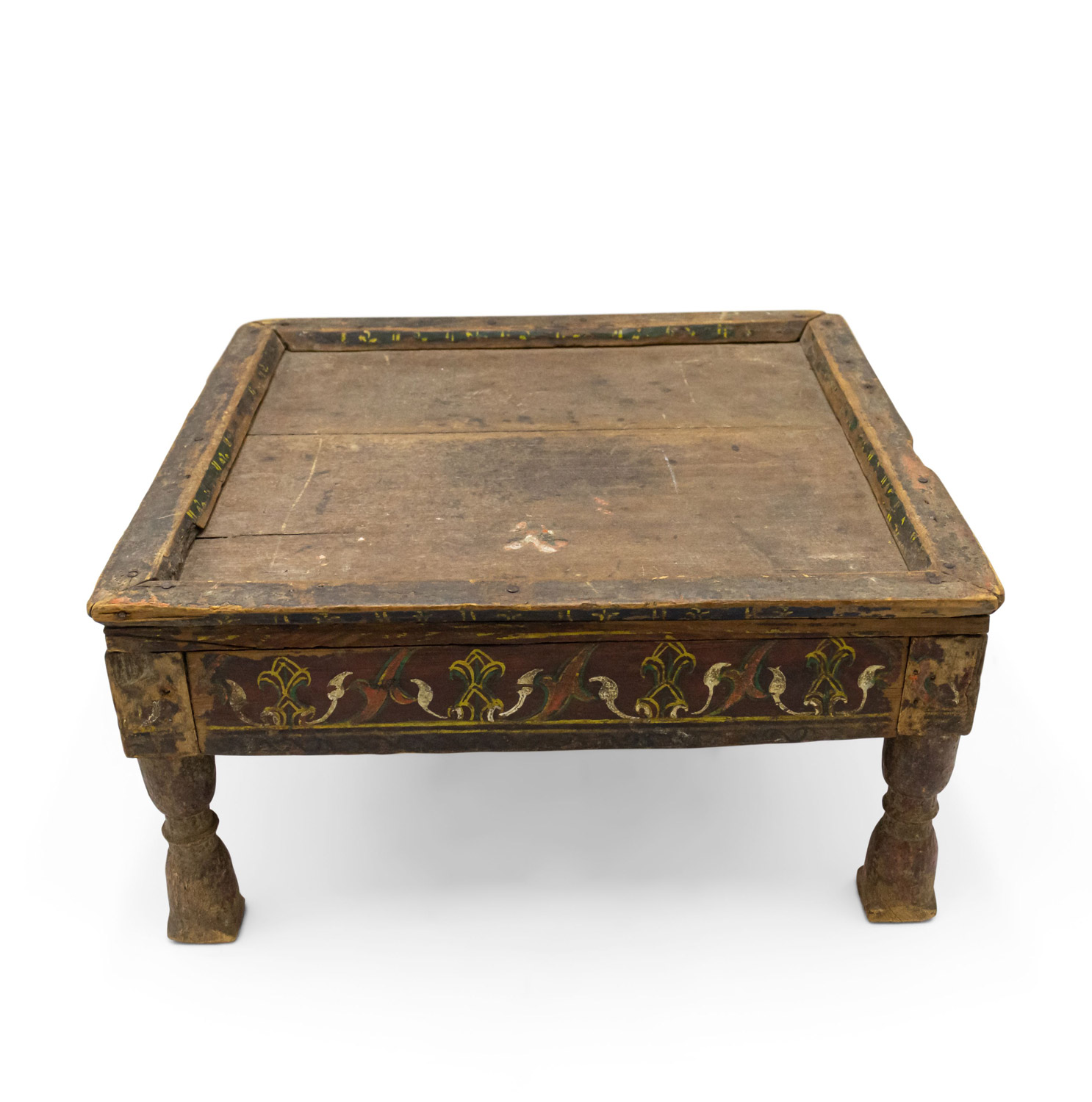 English Anglo-Indian (19th Cent) square foot stool with a decorated apron