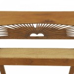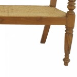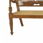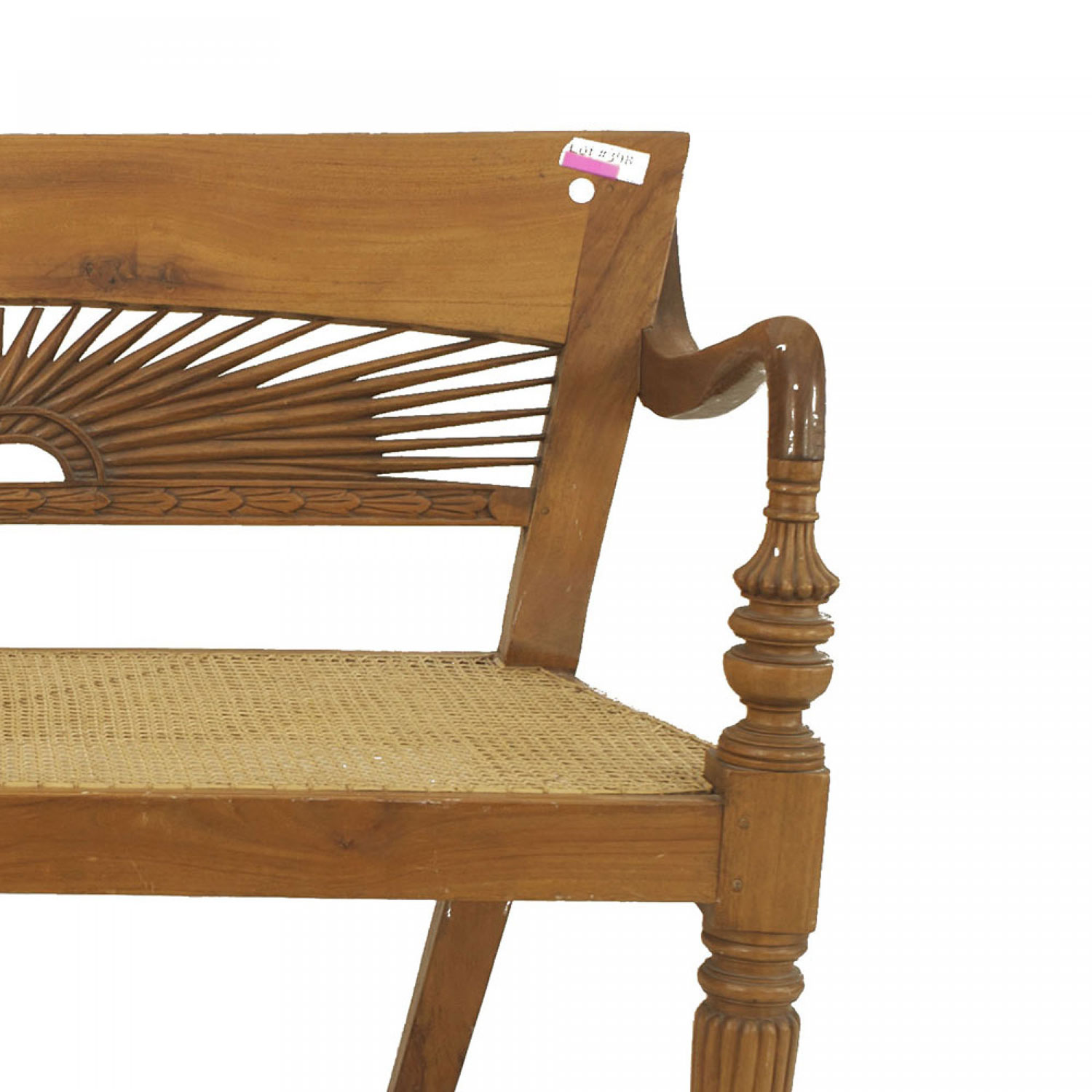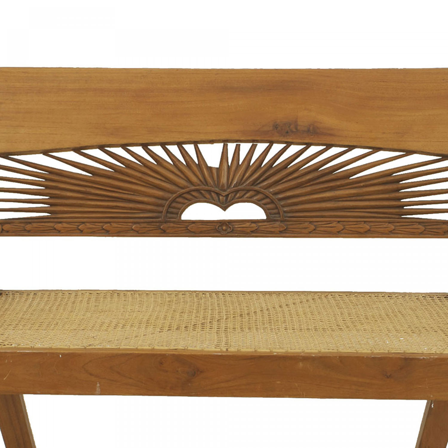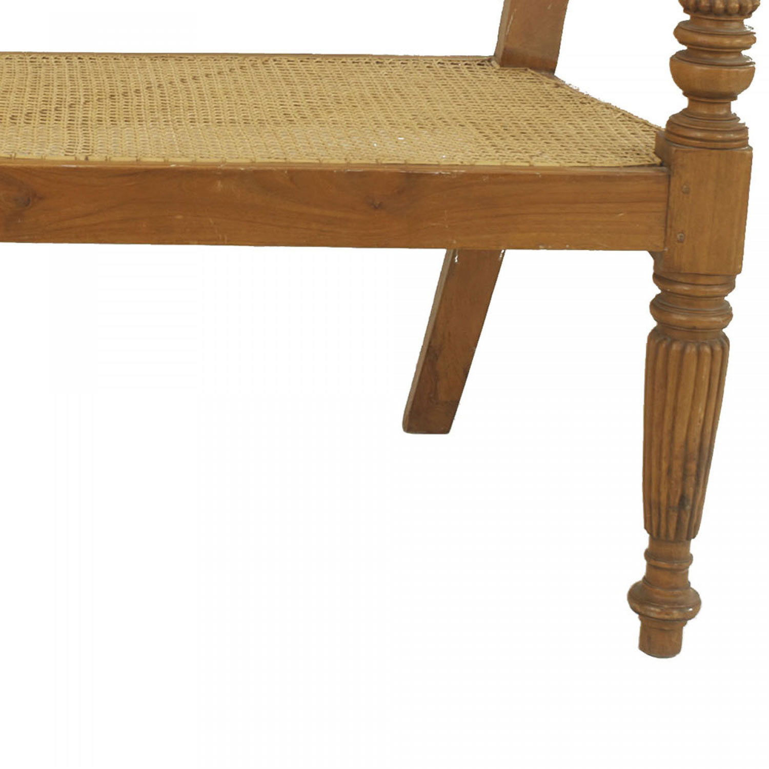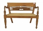 English Anglo-Indian teak loveseat with a cane seat and a slat sunburst carved back with fluted legs (1pc of back missing)