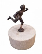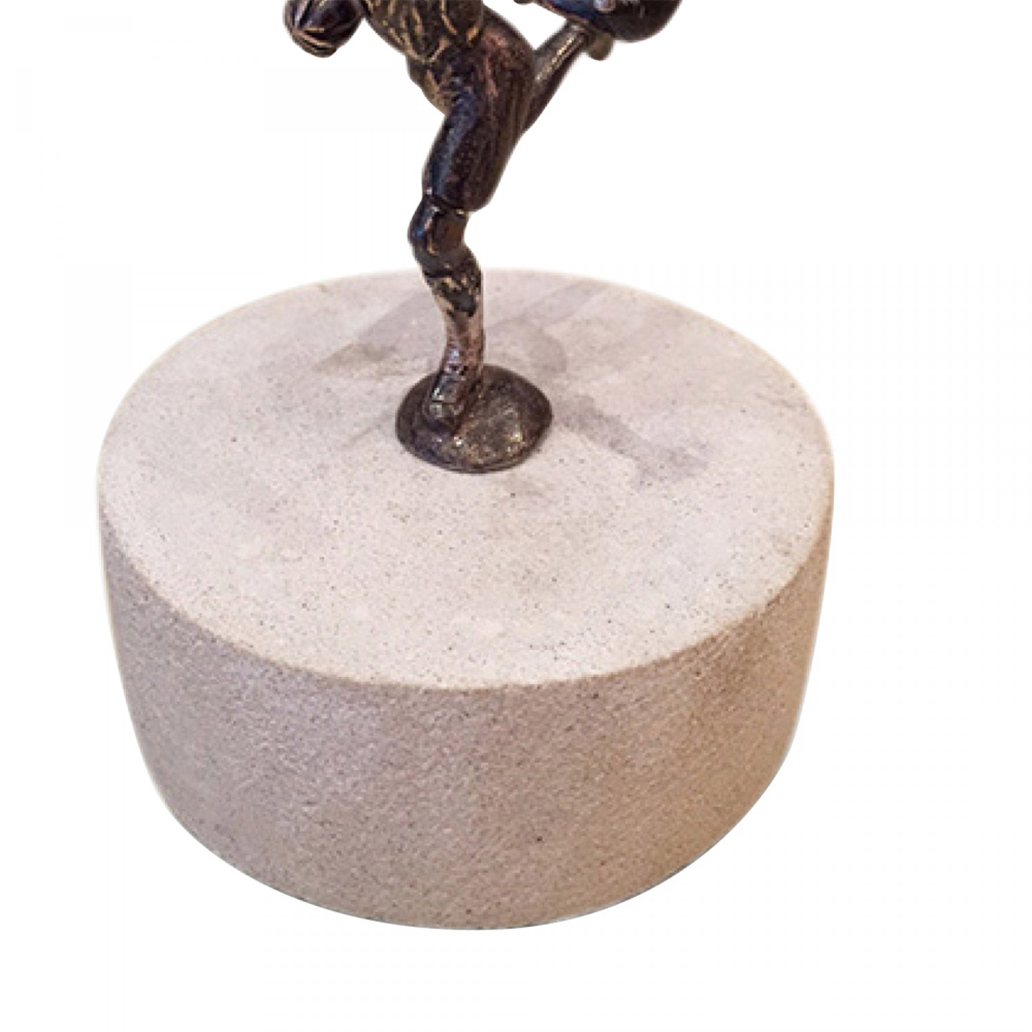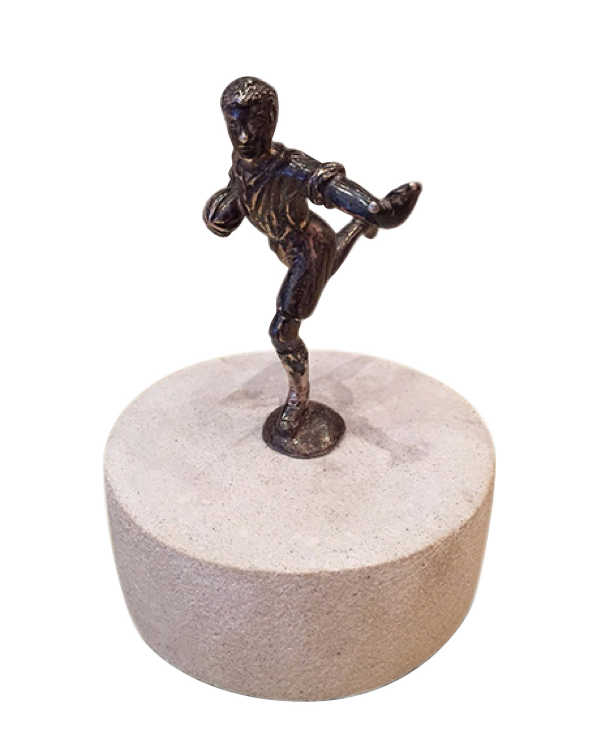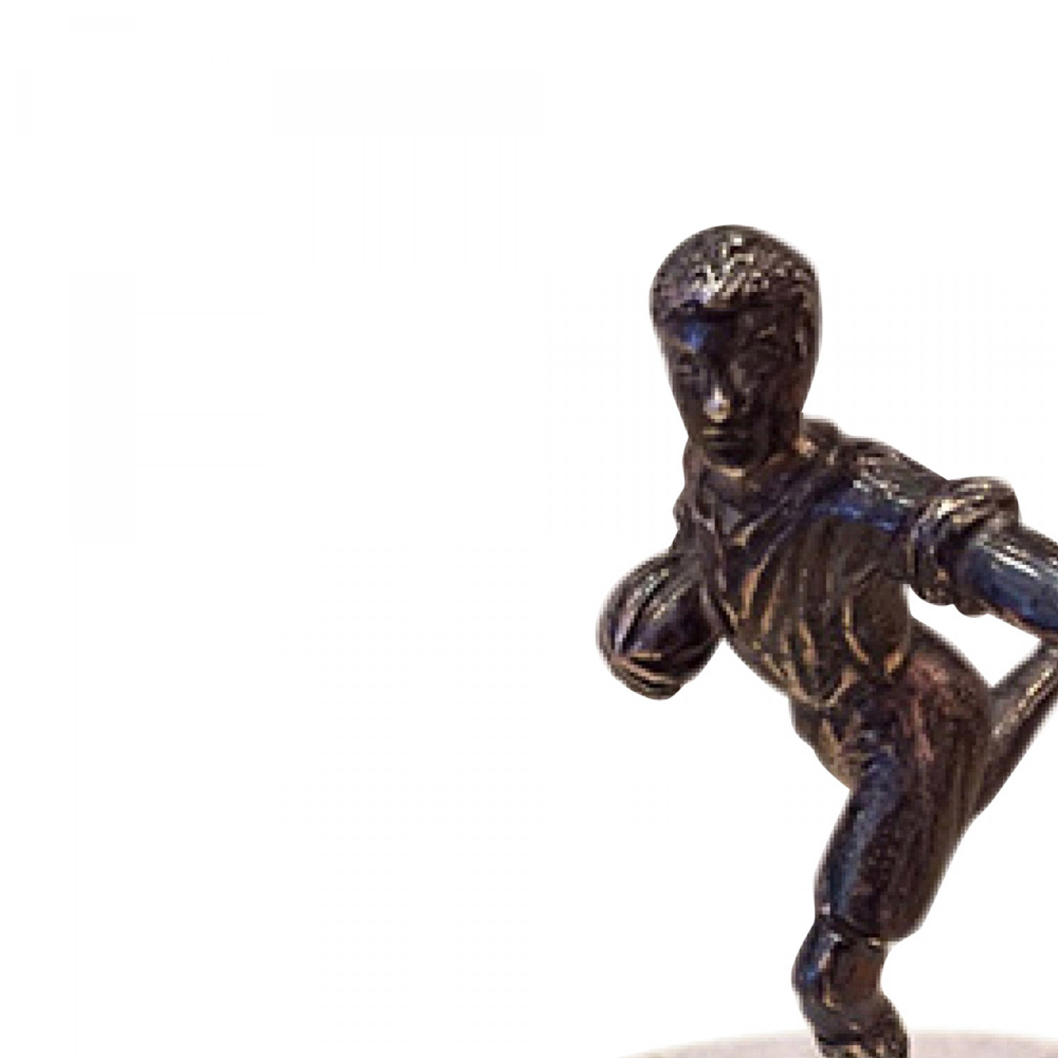 English Art Deco silver plate football (rugby) player mounted on a round white marble base (20th Cent.)