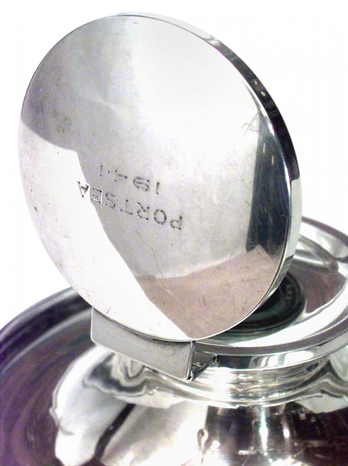 English Art Moderne round silver inkwell. (Portsea 1941).