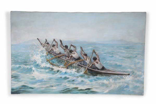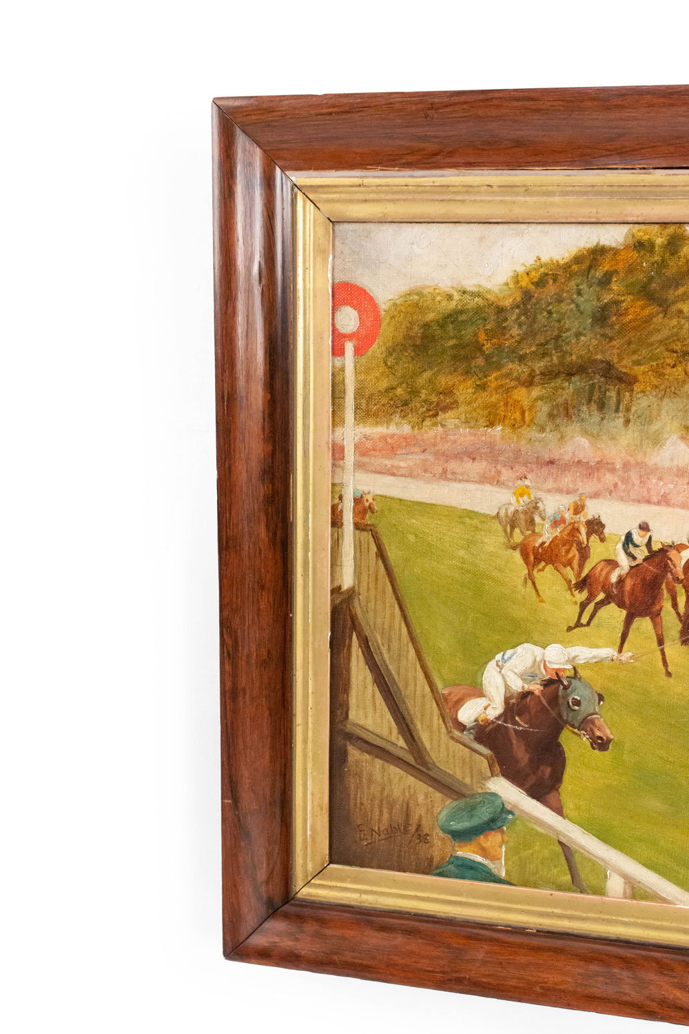 English Art Moderne (Mid 20th Cent) oil painting of Stewart's Cup horse race in rosewood frame