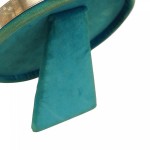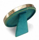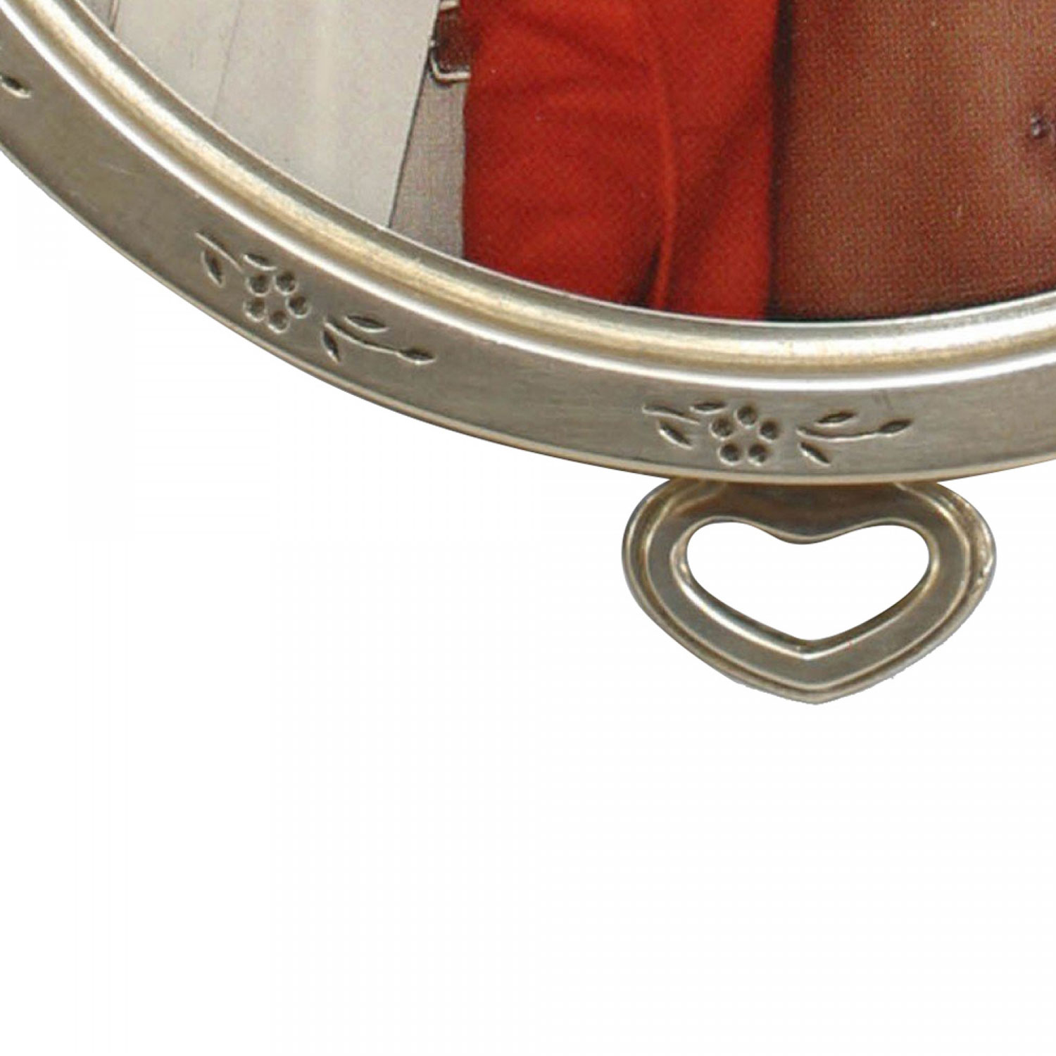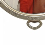 English Arts and Crafts sterling silver round easel picture frame with simple floral etched design and shaped ring top with teal velvet backing.