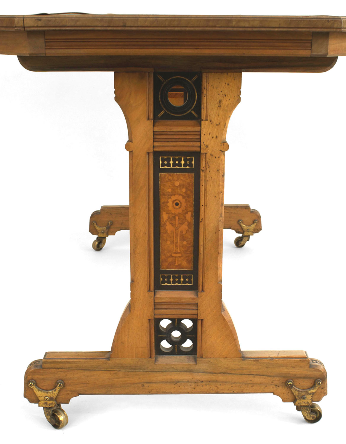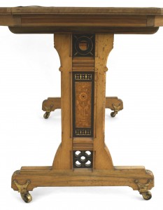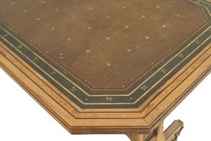 Style: English Materials & Techniques: Wood, elm, leather, burl, inlay Category: Tables, Office/Library