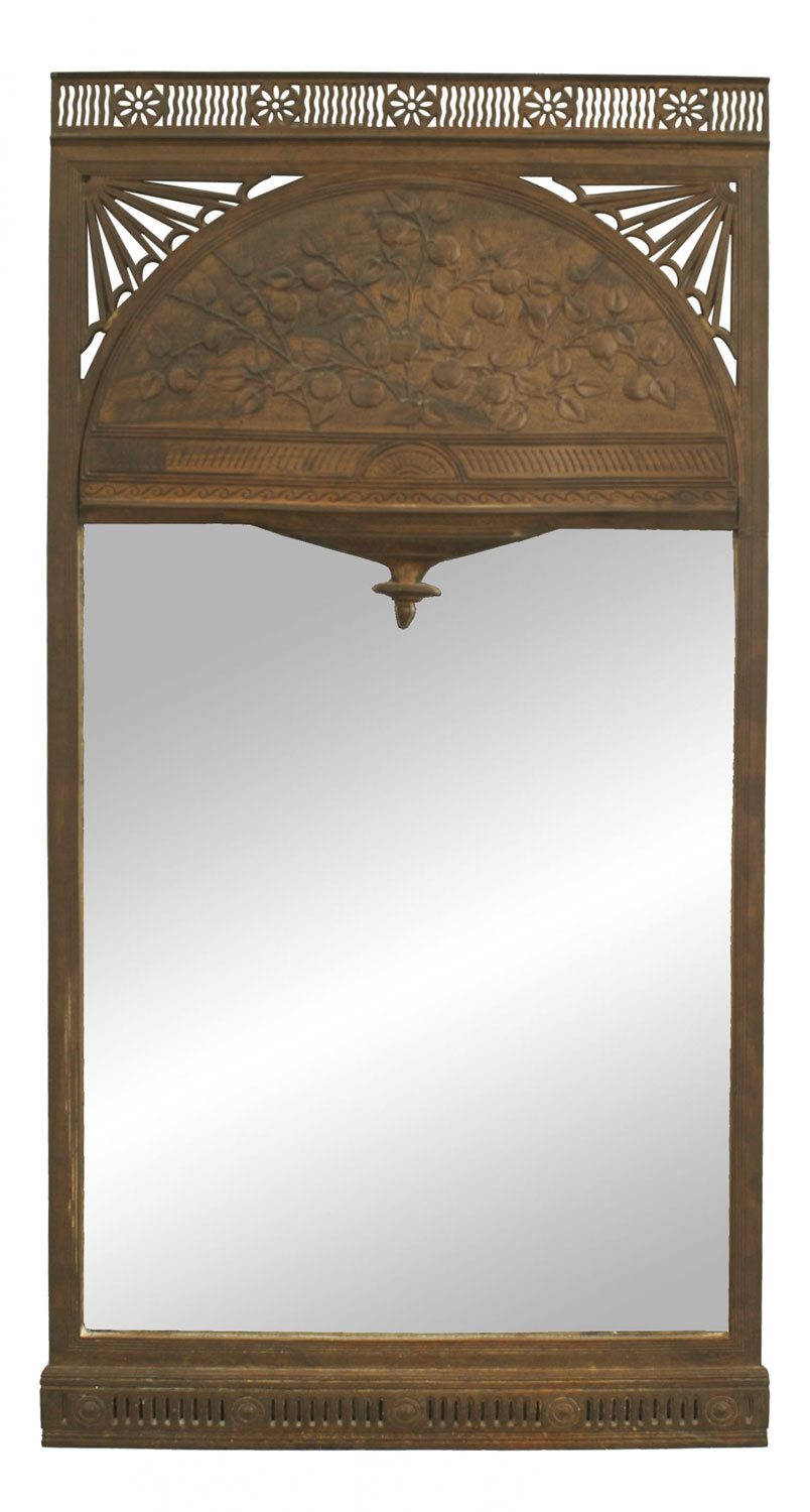 English Arts & Crafts Patinated Iron Floral Design Wall Mirror