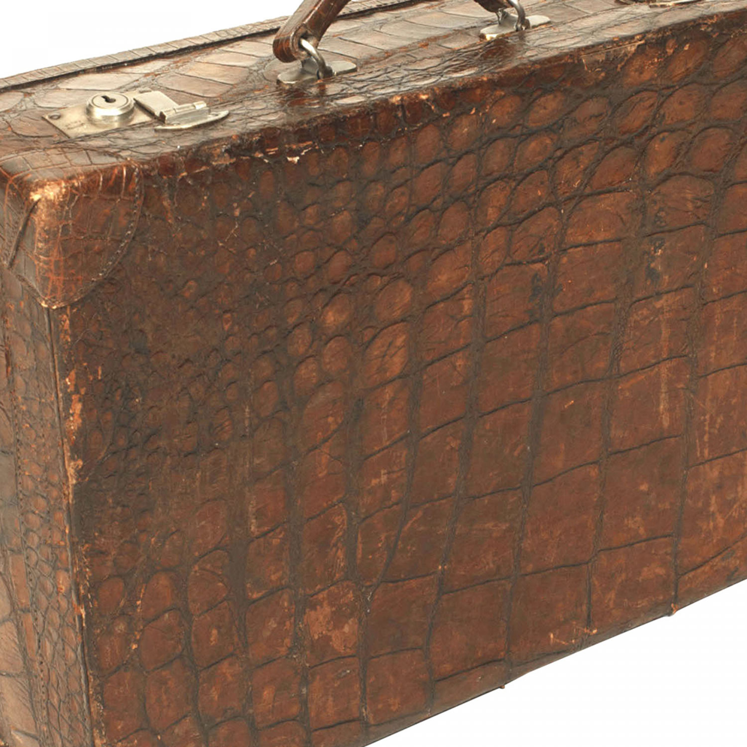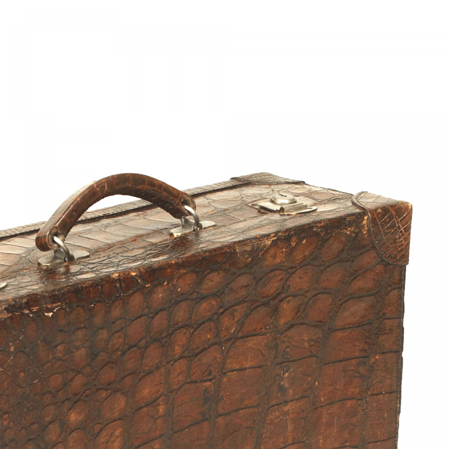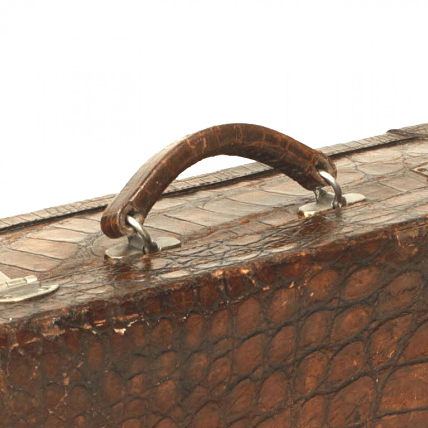 English dark brown crocodile valise with brass latches..