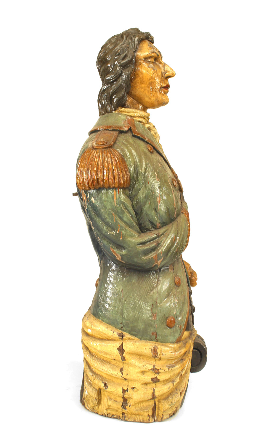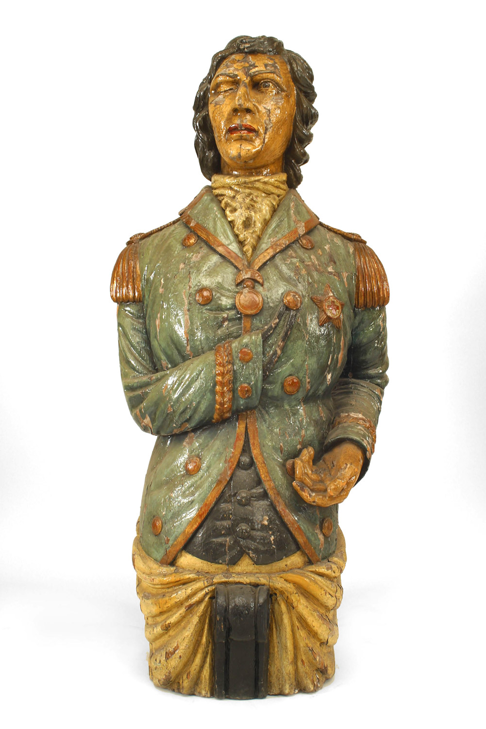English carved and painted large figurehead of Lord Nelson. (19th Cent.).