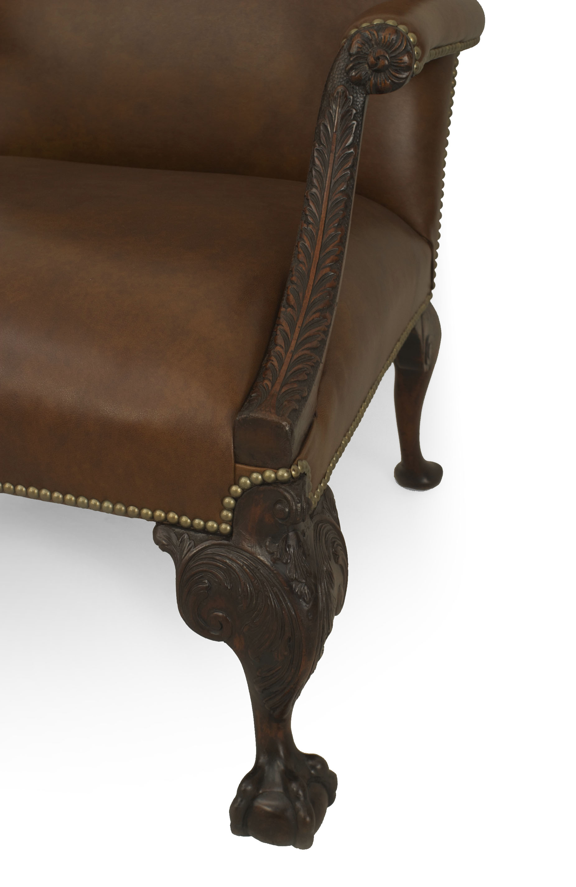 Style: English Materials & Techniques: Mahogany, leather, carved Category: Seating