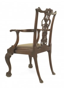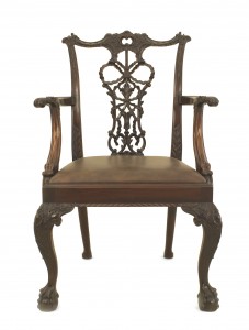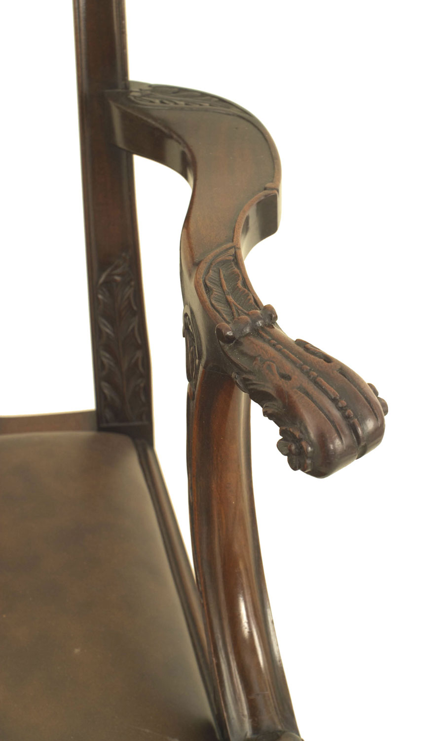 Style: English Materials & Techniques: Carved, leather, mahogany Category: Seating, Office/Library, Dining Room