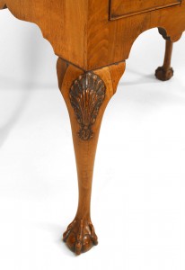 English Chippendale style (18th Century) burl walnut veneer lowboy with 3 drawers and brass handles..