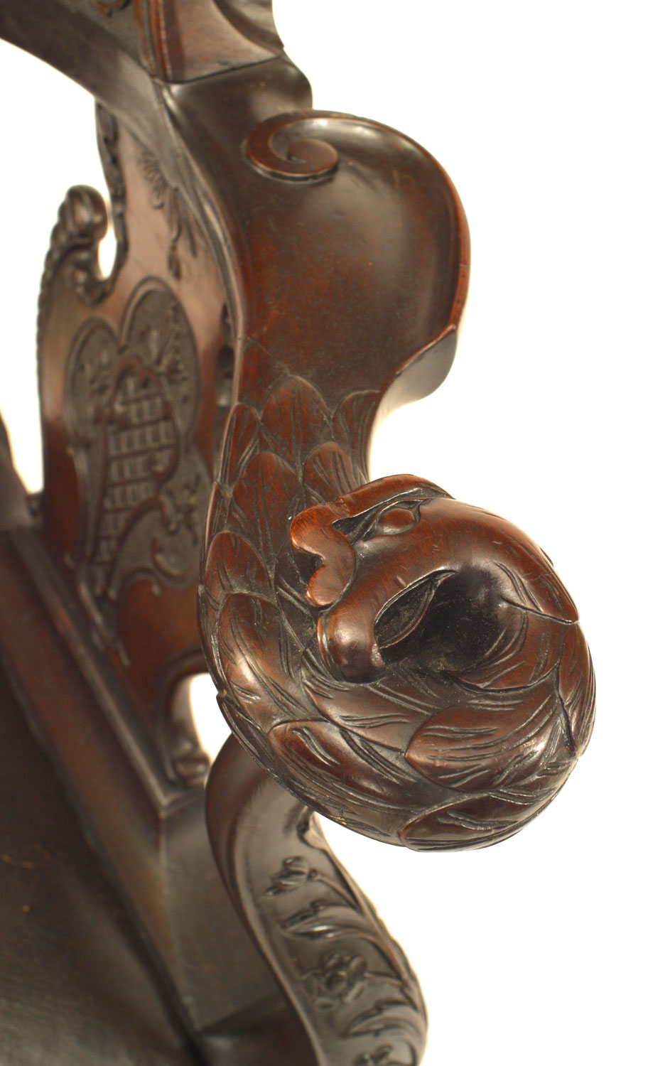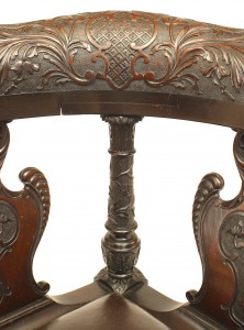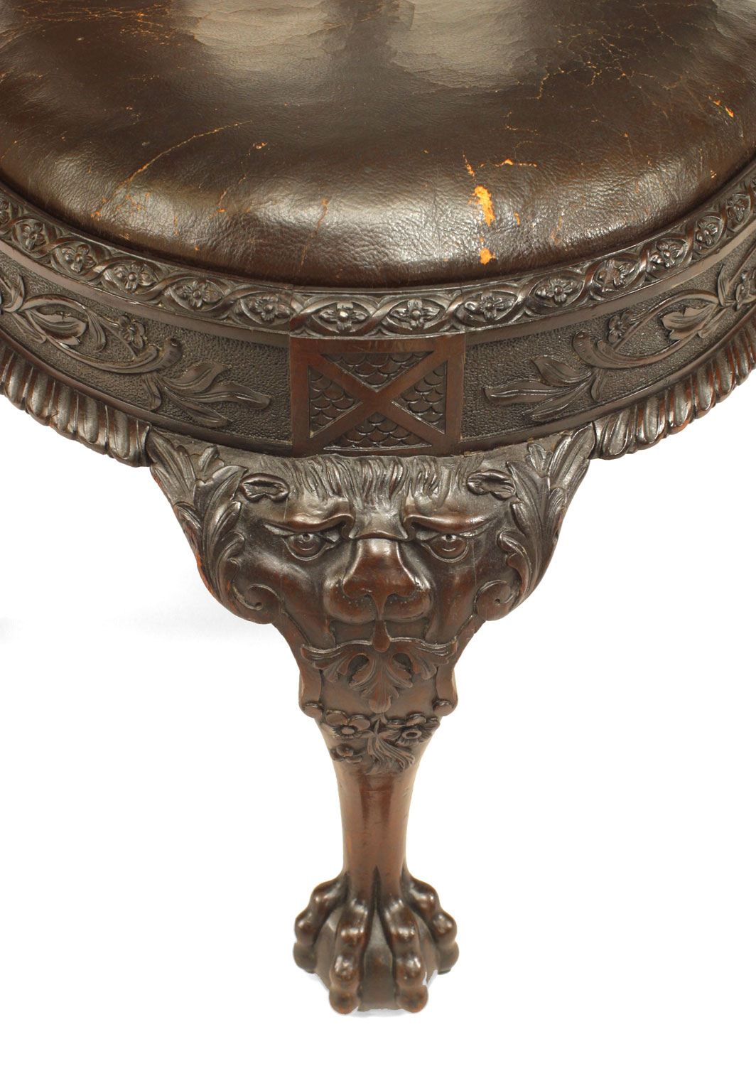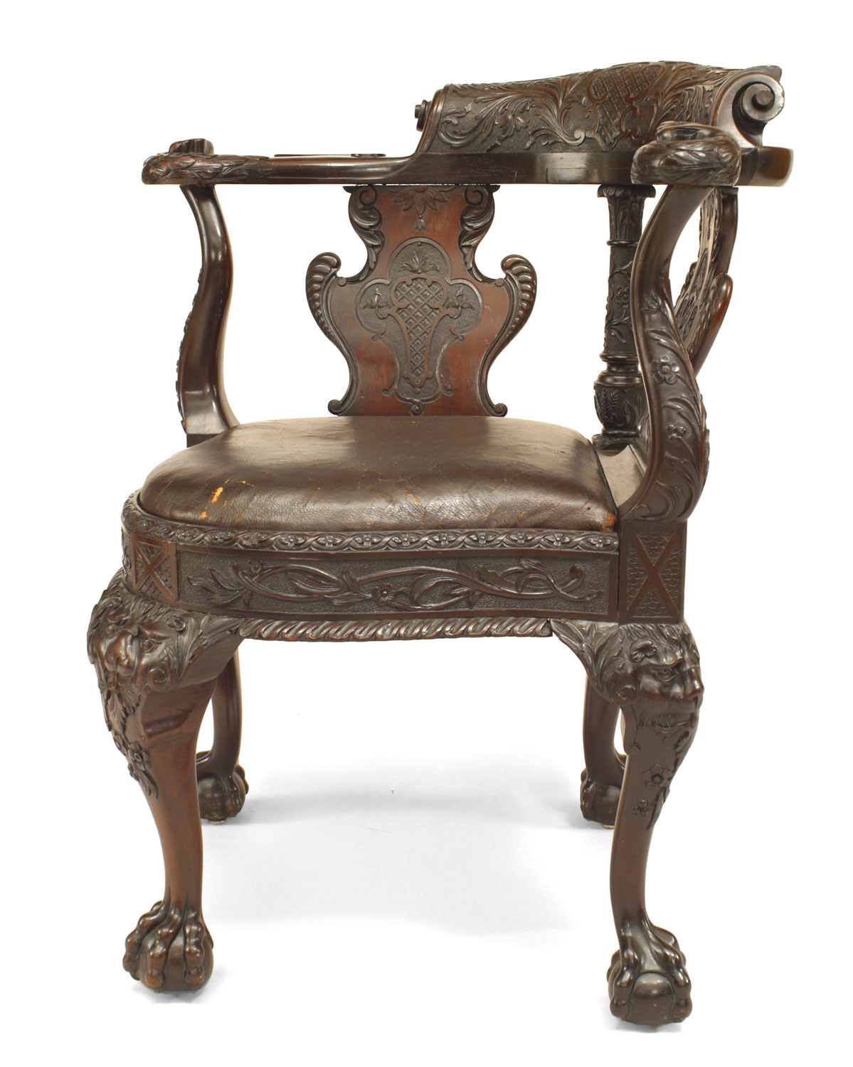 Style: English Materials & Techniques: Mahogany, leather, carved Category: Seating