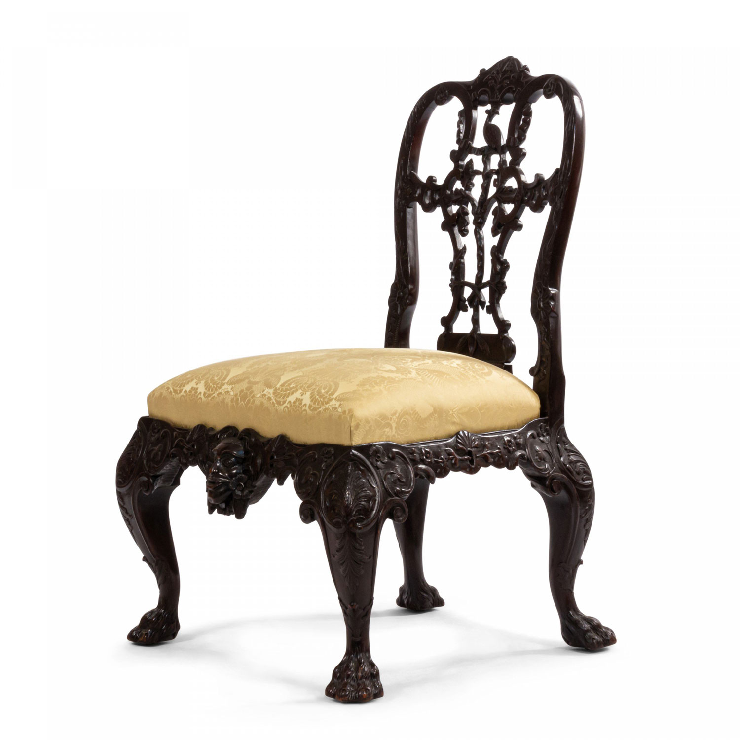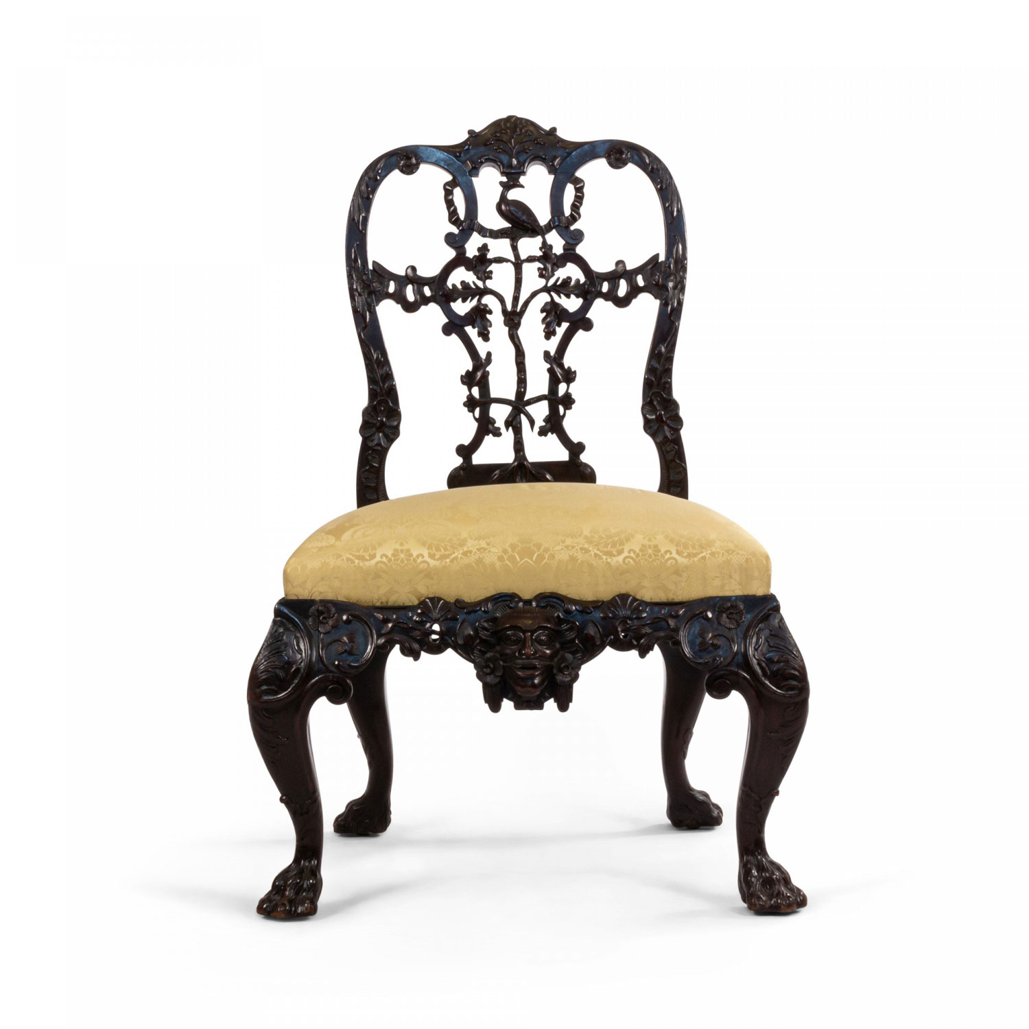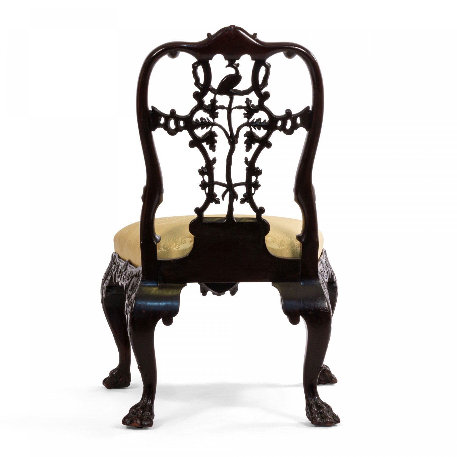 Set of 10 Chippendale style possibly Irish (19th Cent) mahogany ribbon back chairs with bird design and hairy paw feet (2 arm chairs: 33"w 24"d 40"h, 8 side chairs).
