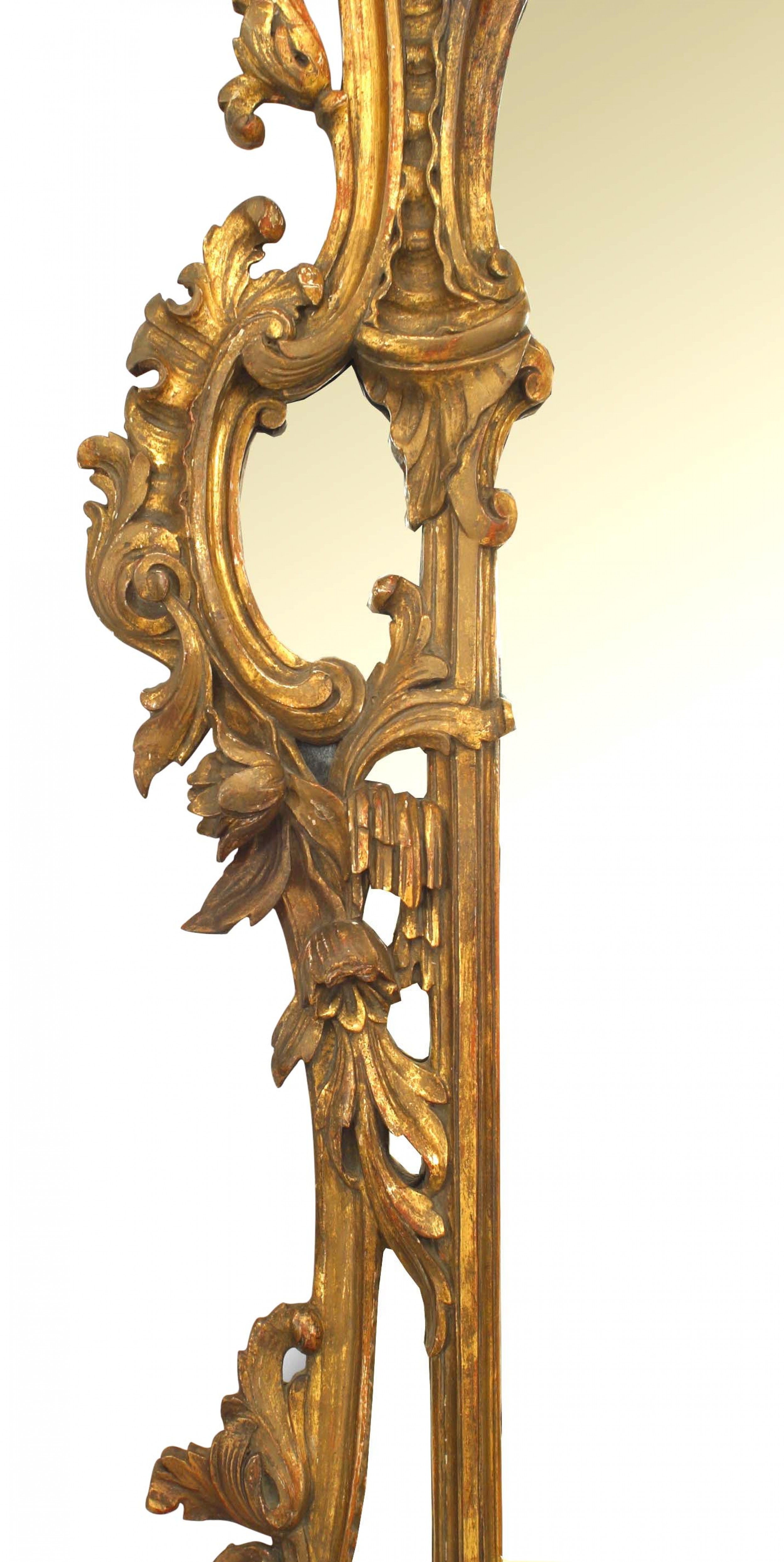 English Chippendale-style (19th/20th Century) carved giltwood wall mirror with foliate scroll form moulding..