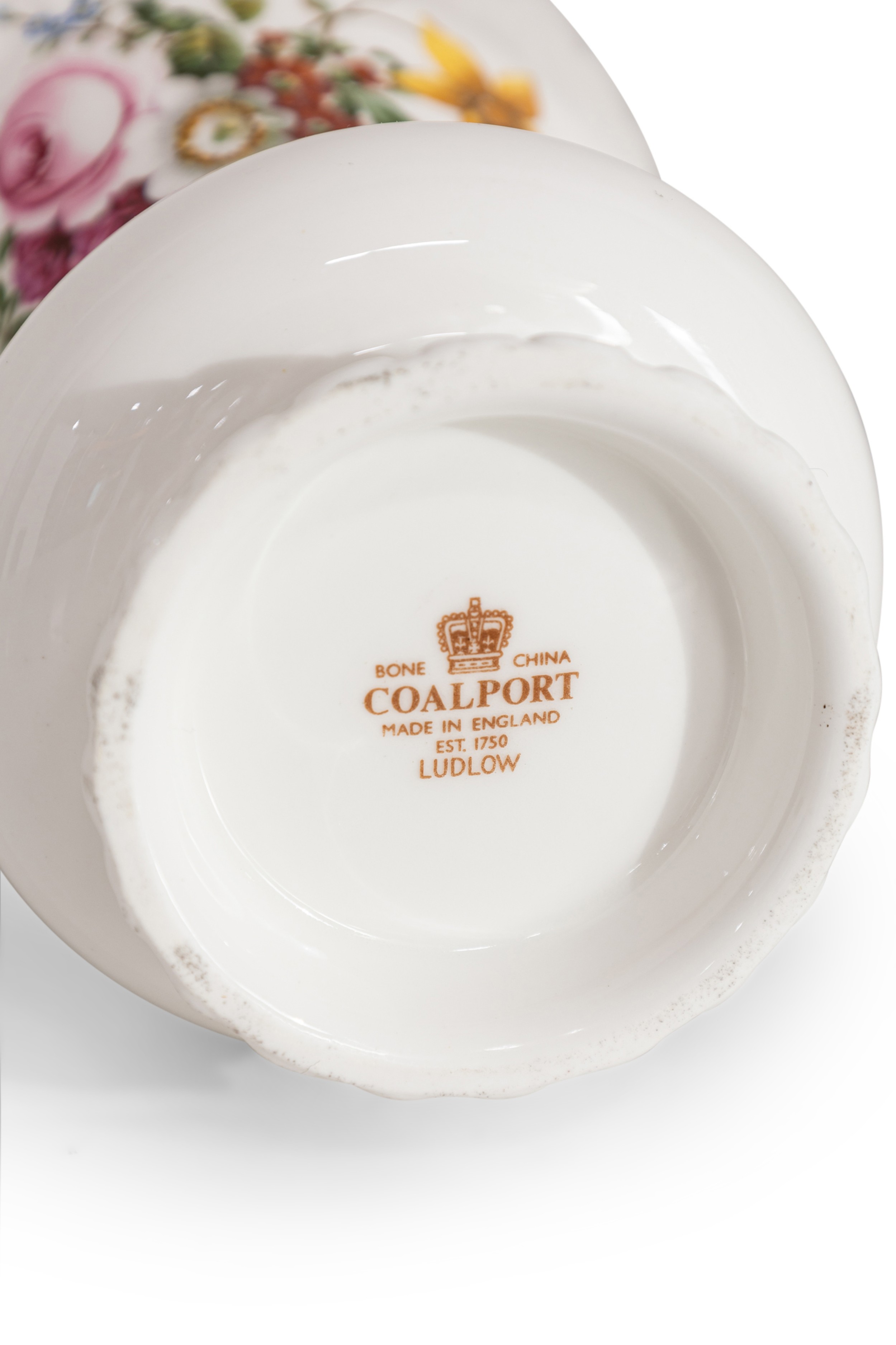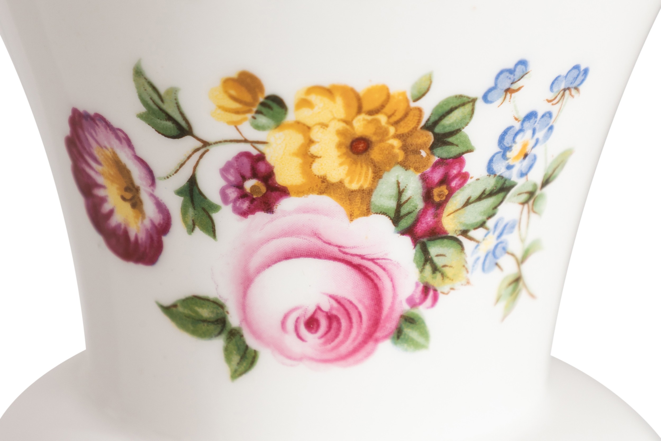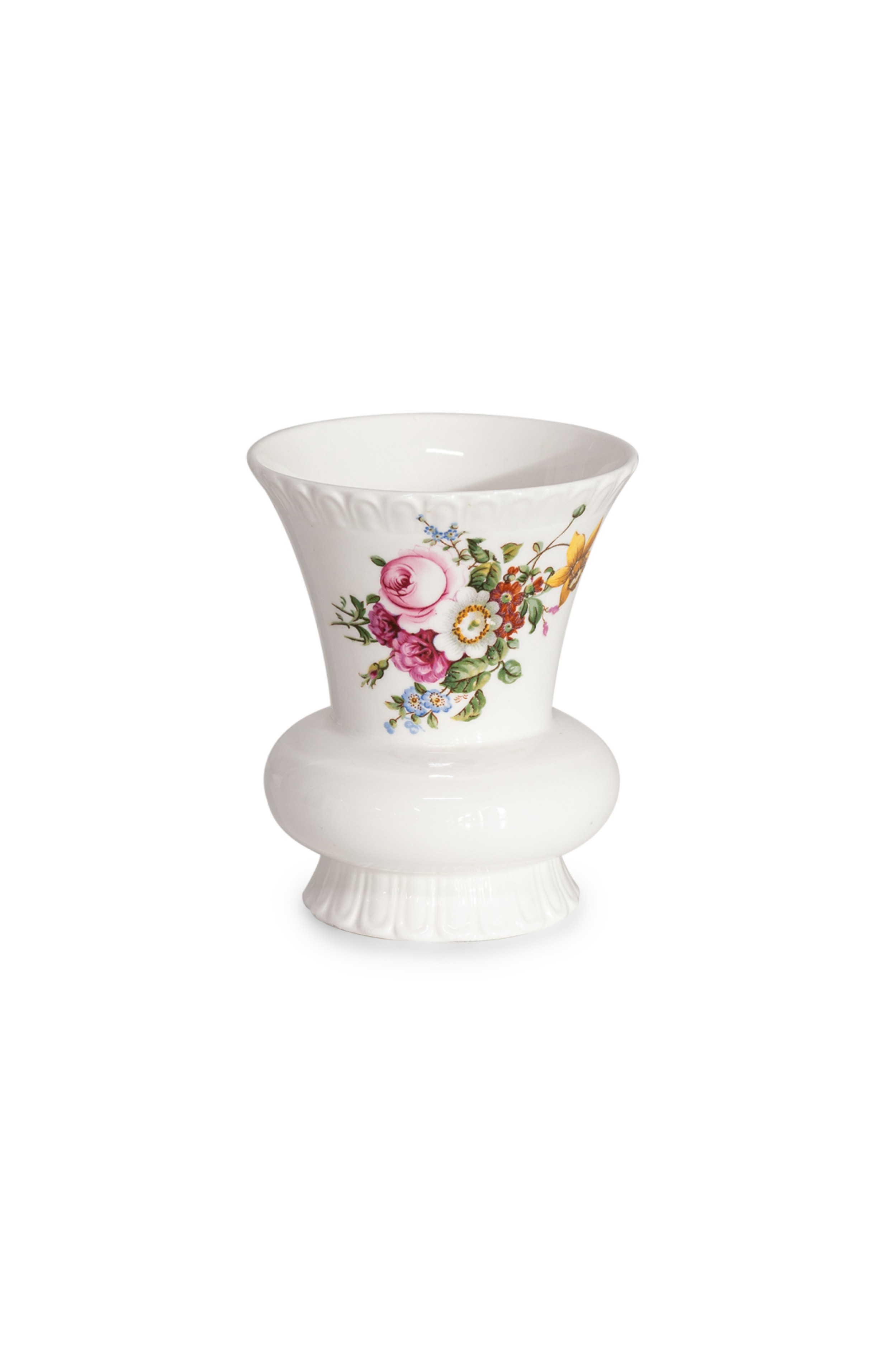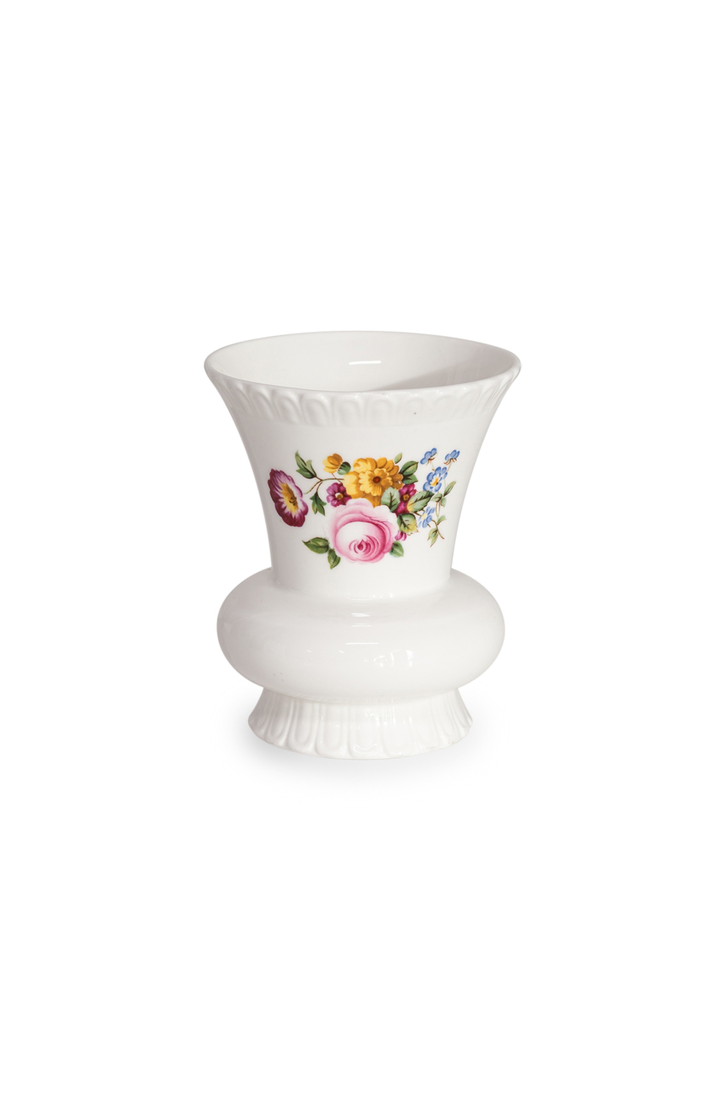 Vintage English small bone china vase with colorful painted flowers (COALPORT).