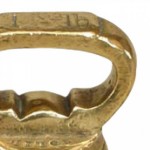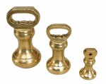 English Country style (19th Cent) brass 3 similar piece weight set with loop top (1@ 4 oz, 1 @ 1lb., 1 @ 2lbs.)