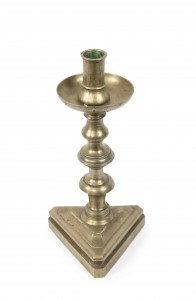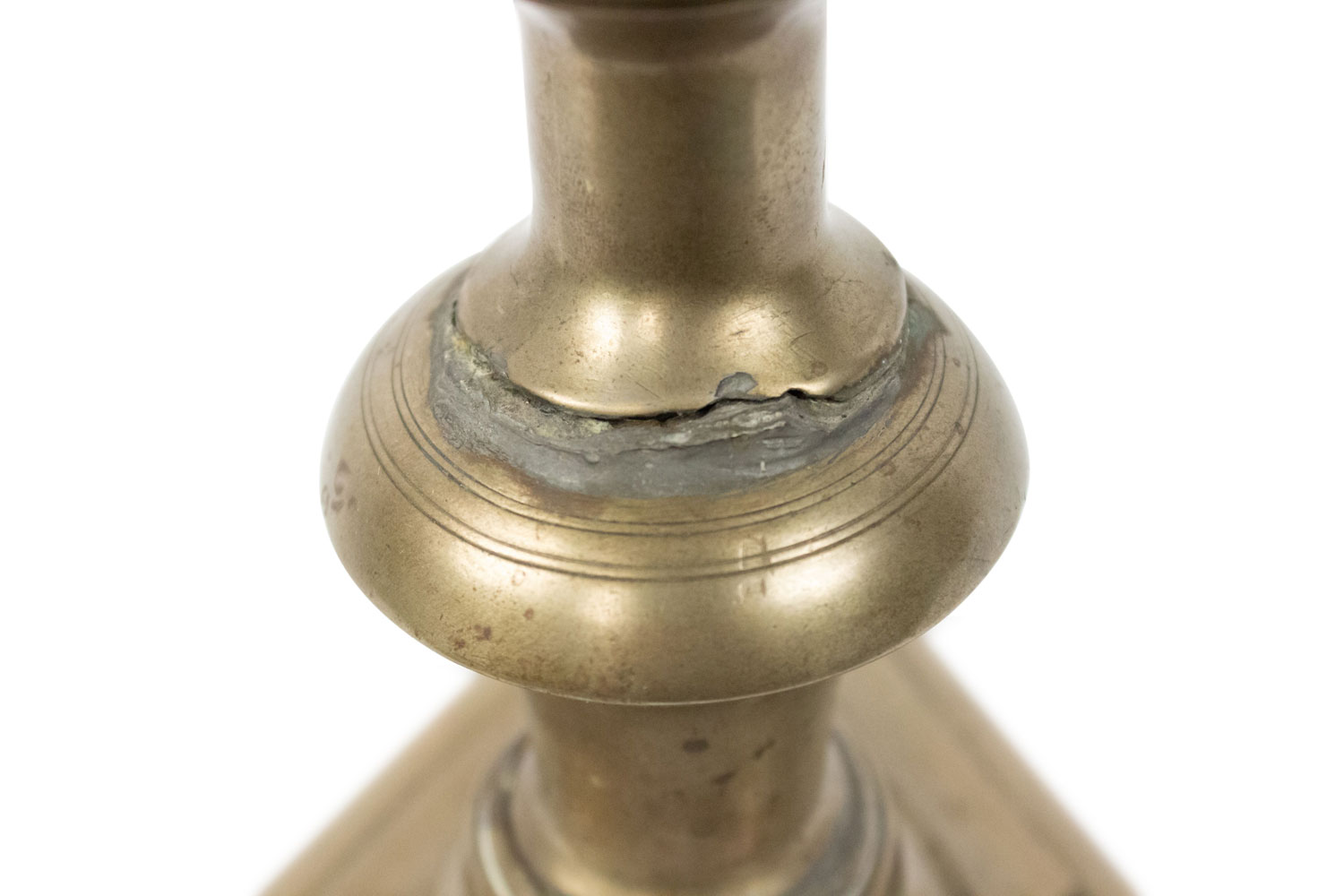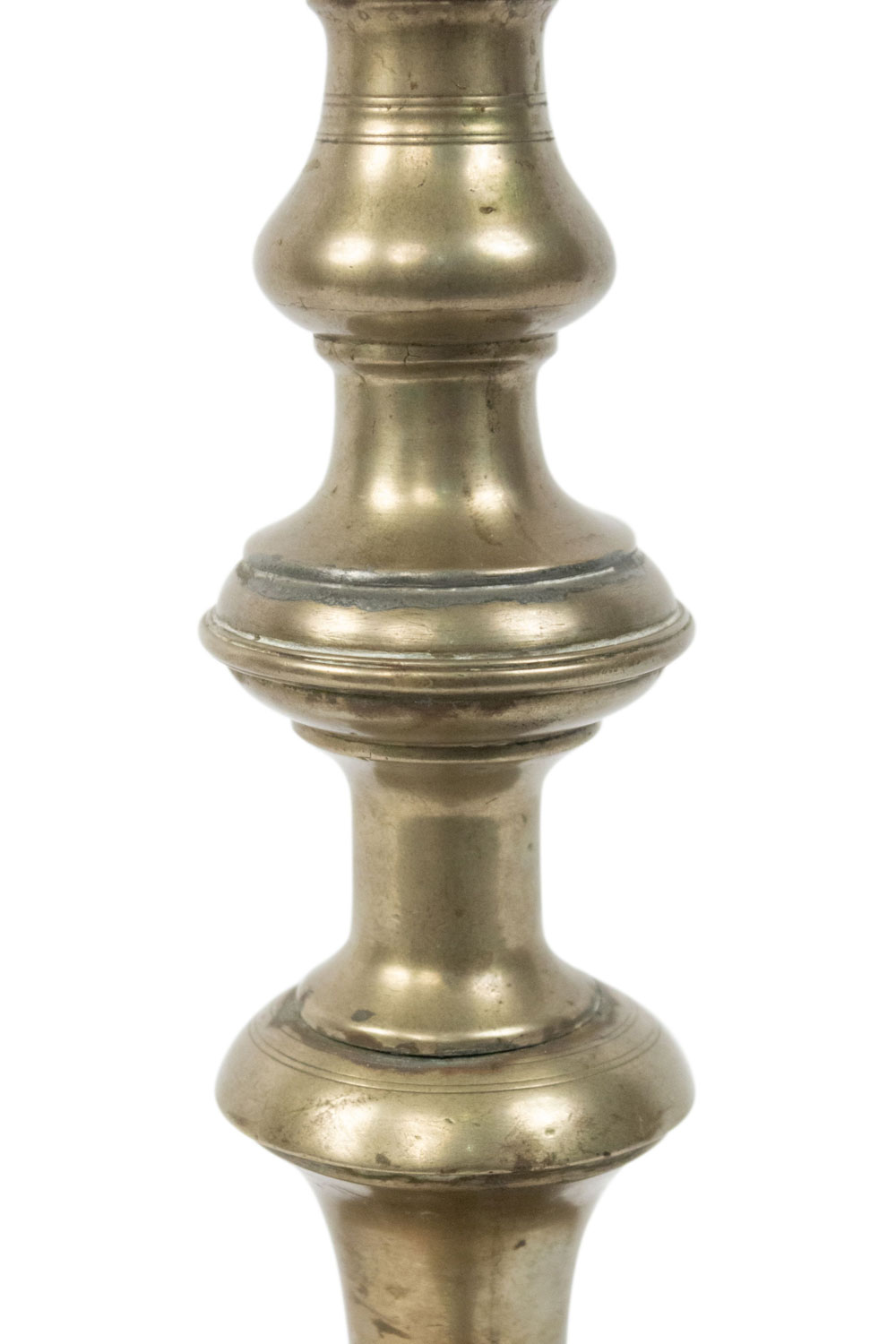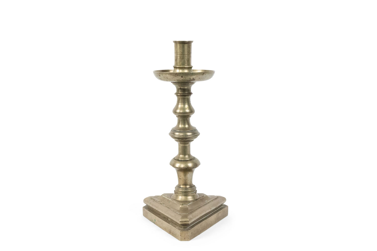 PAIR of English Country (19th Century) pewter turned design candlesticks on triangular base (Skinner Estate) (PRICED AS PAIR)
