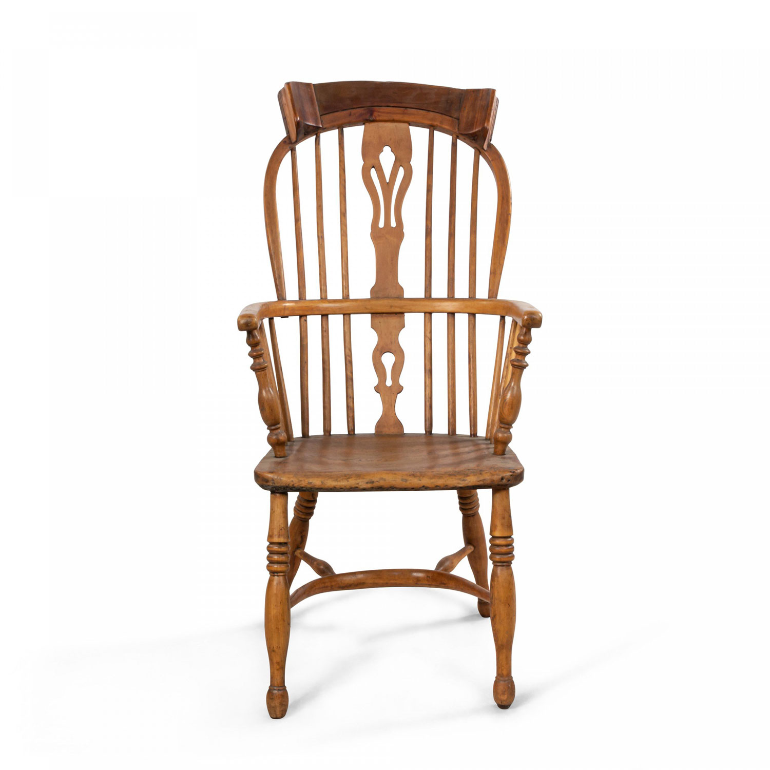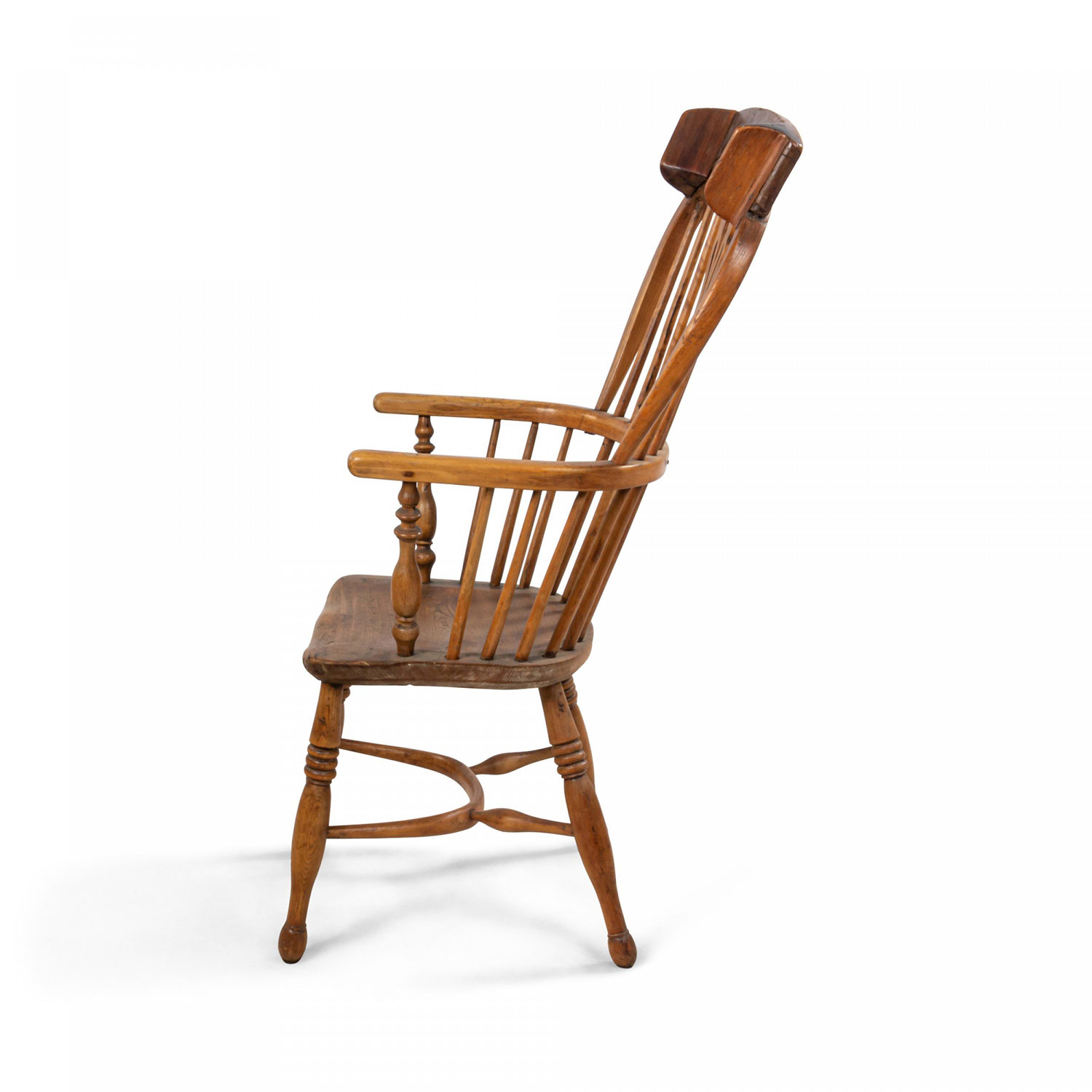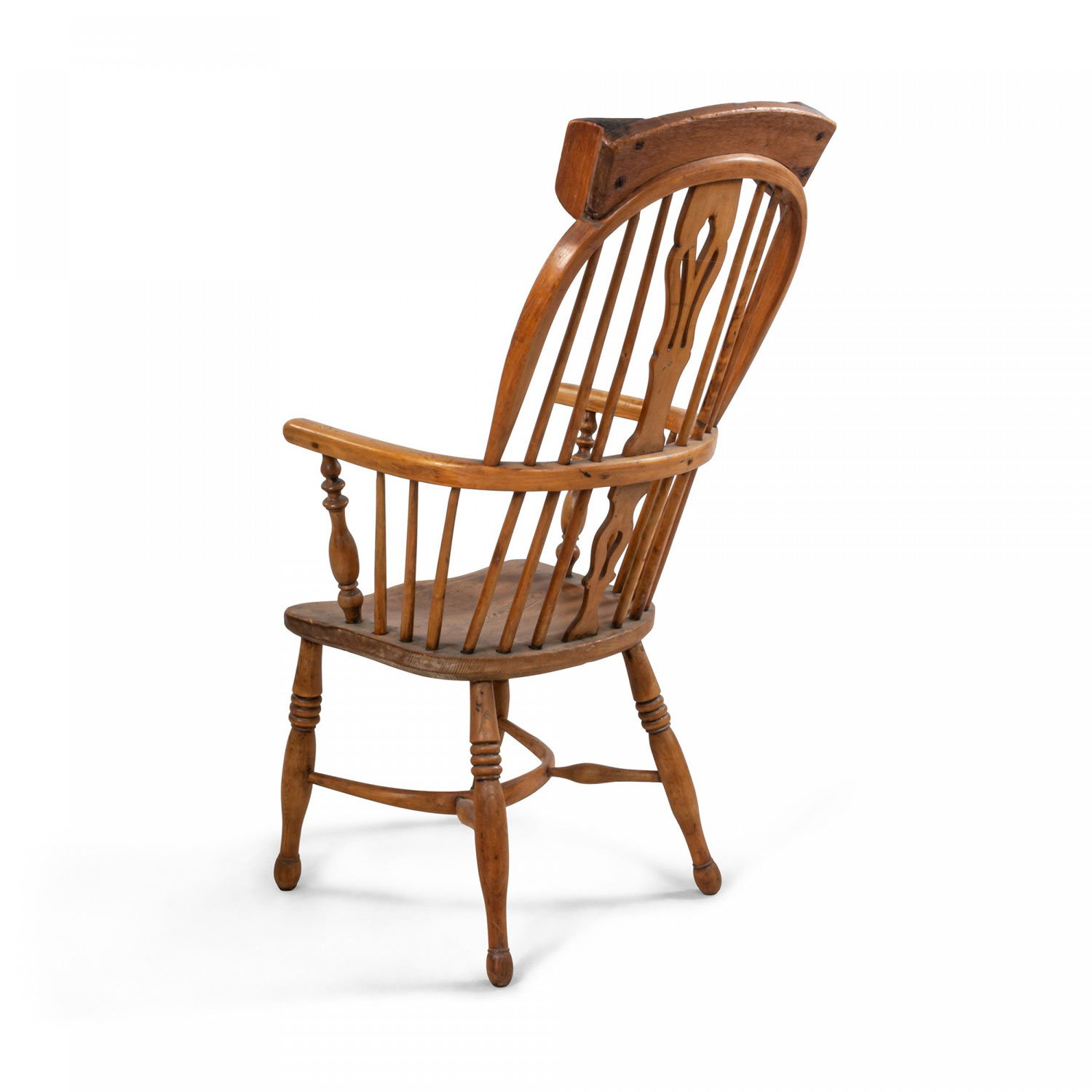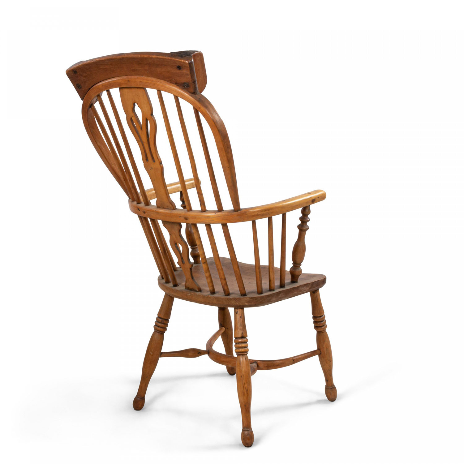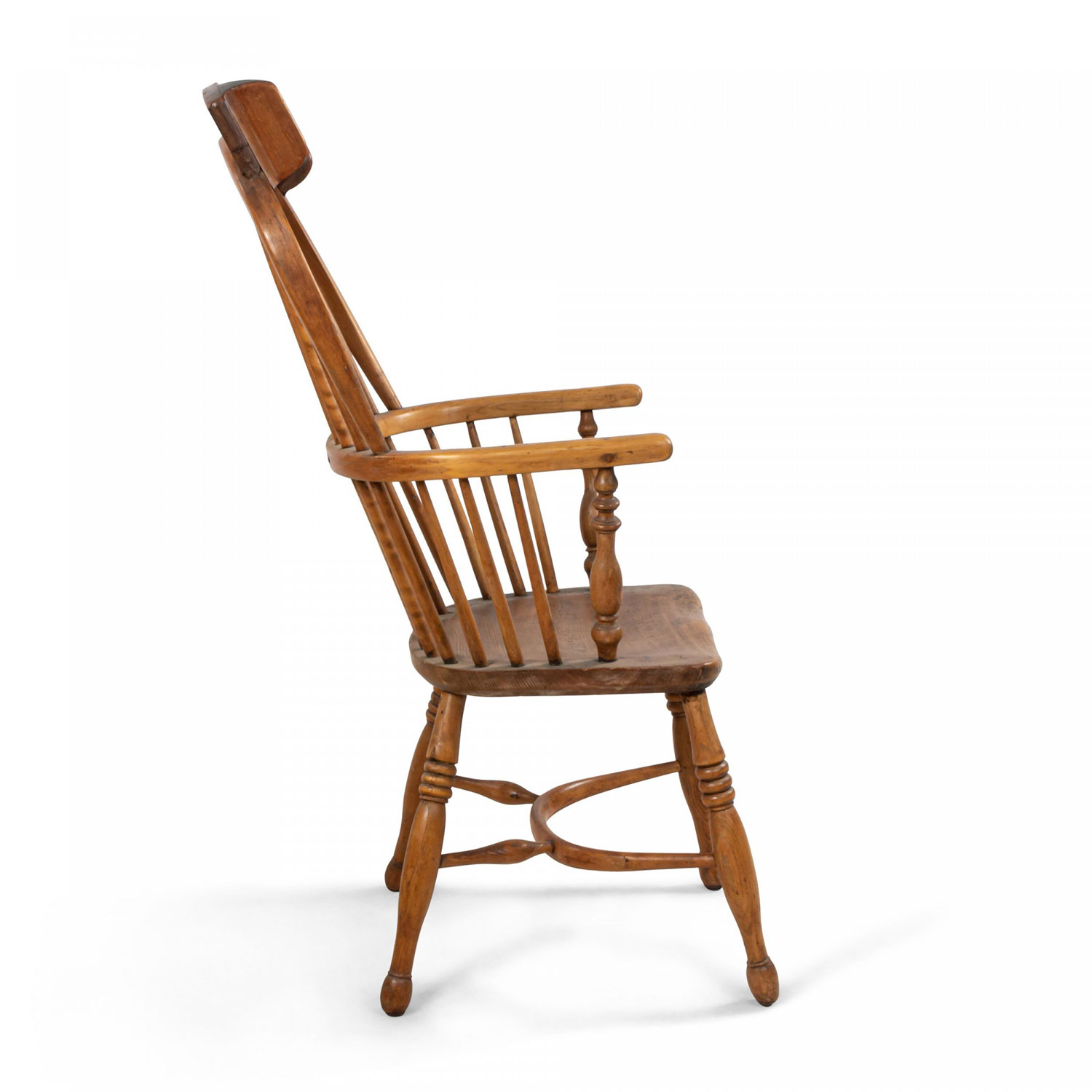 English Country (19th Century) stripped pine Windsor armchair with spindle design and headrest..