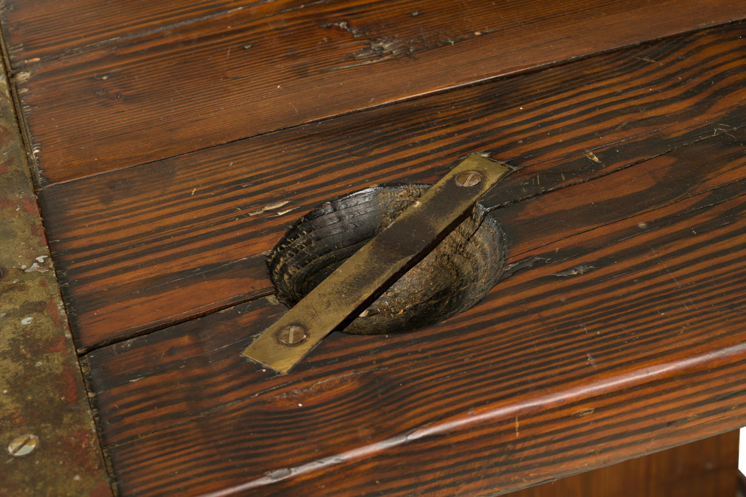 Style: English Materials & Techniques: Brass, iron, oak, wood Category: Tables, Office/Library, Dining Room Good; Wear consistent with age and use