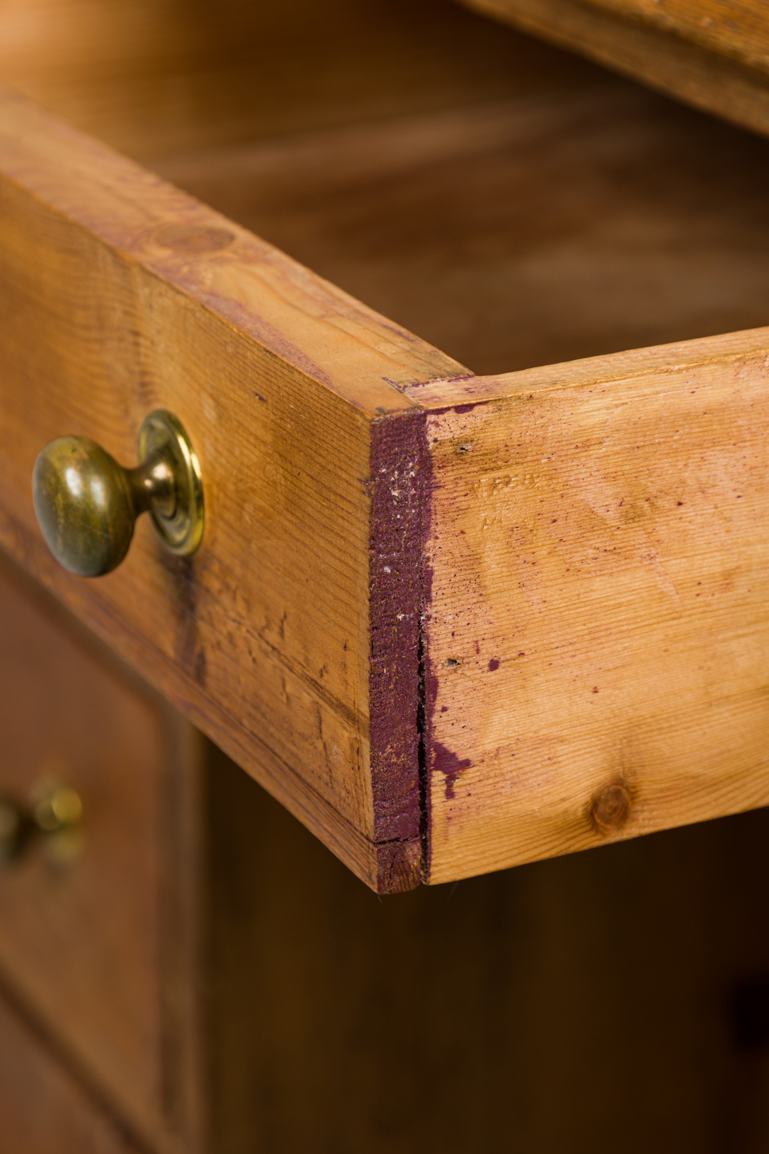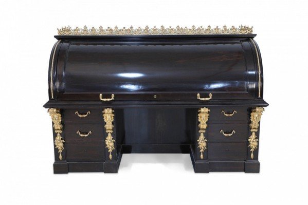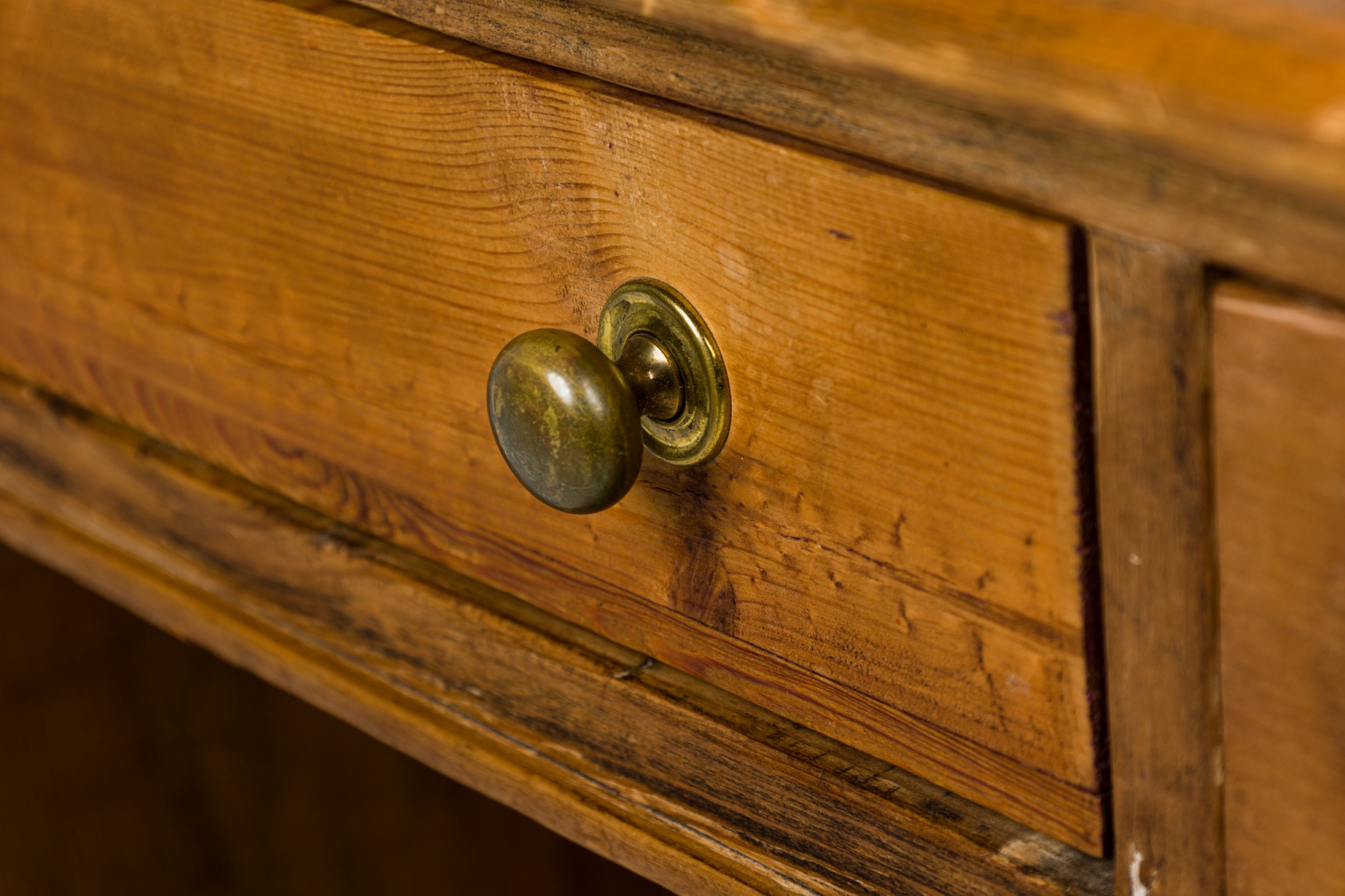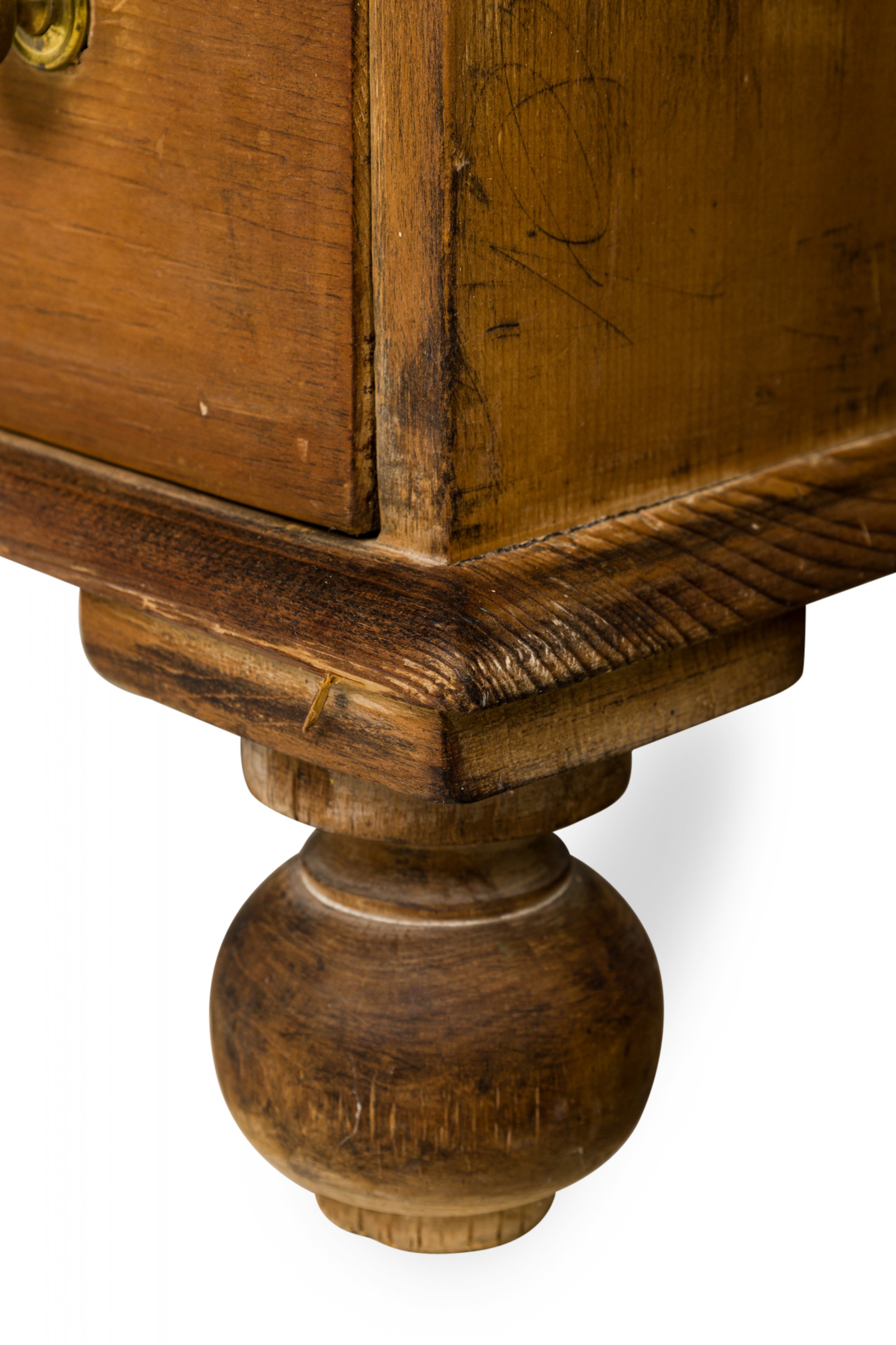Style: English Materials & Techniques: Brass, pine, wood Category: Tables, Office/Library Good; Minor losses