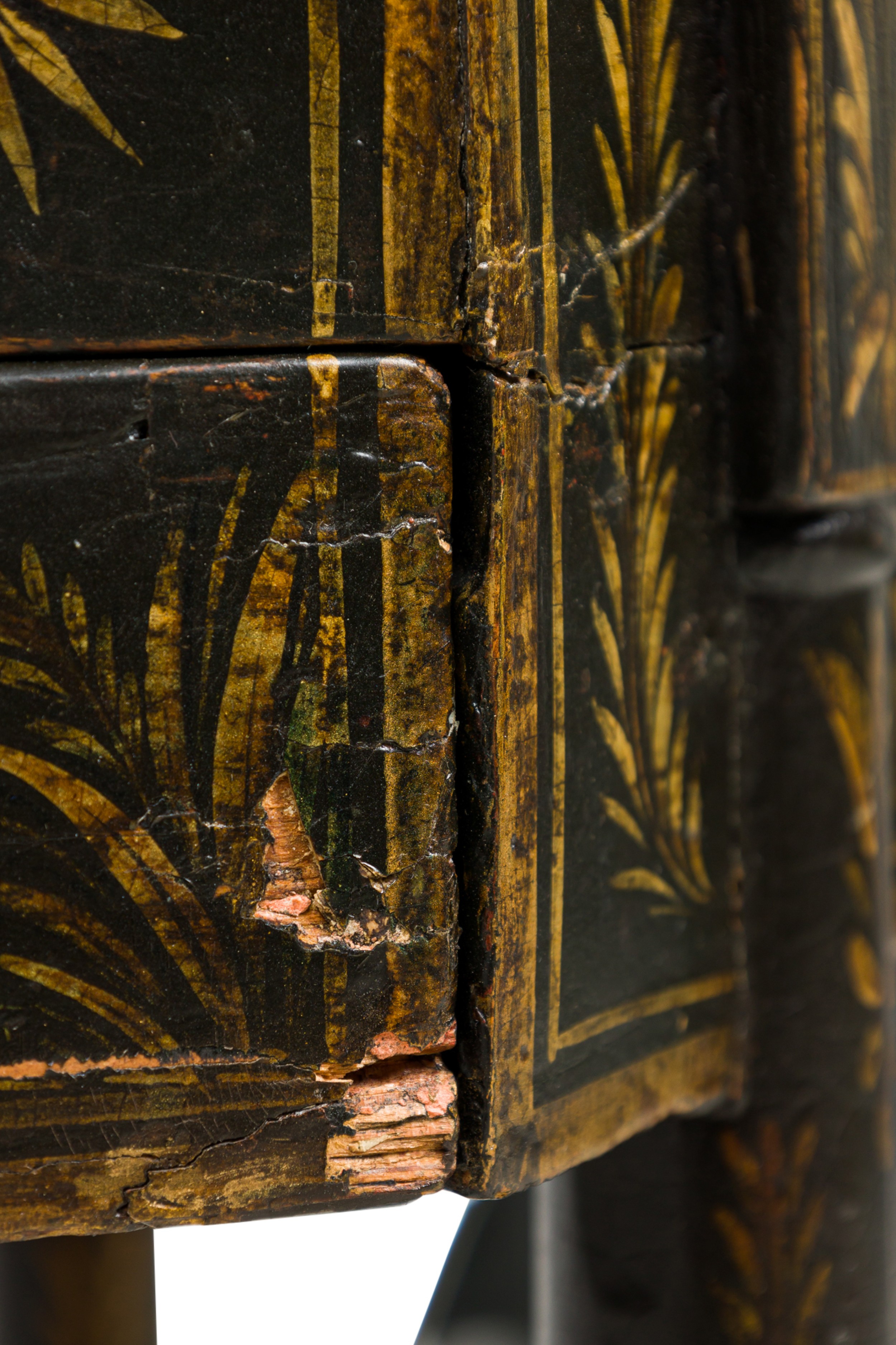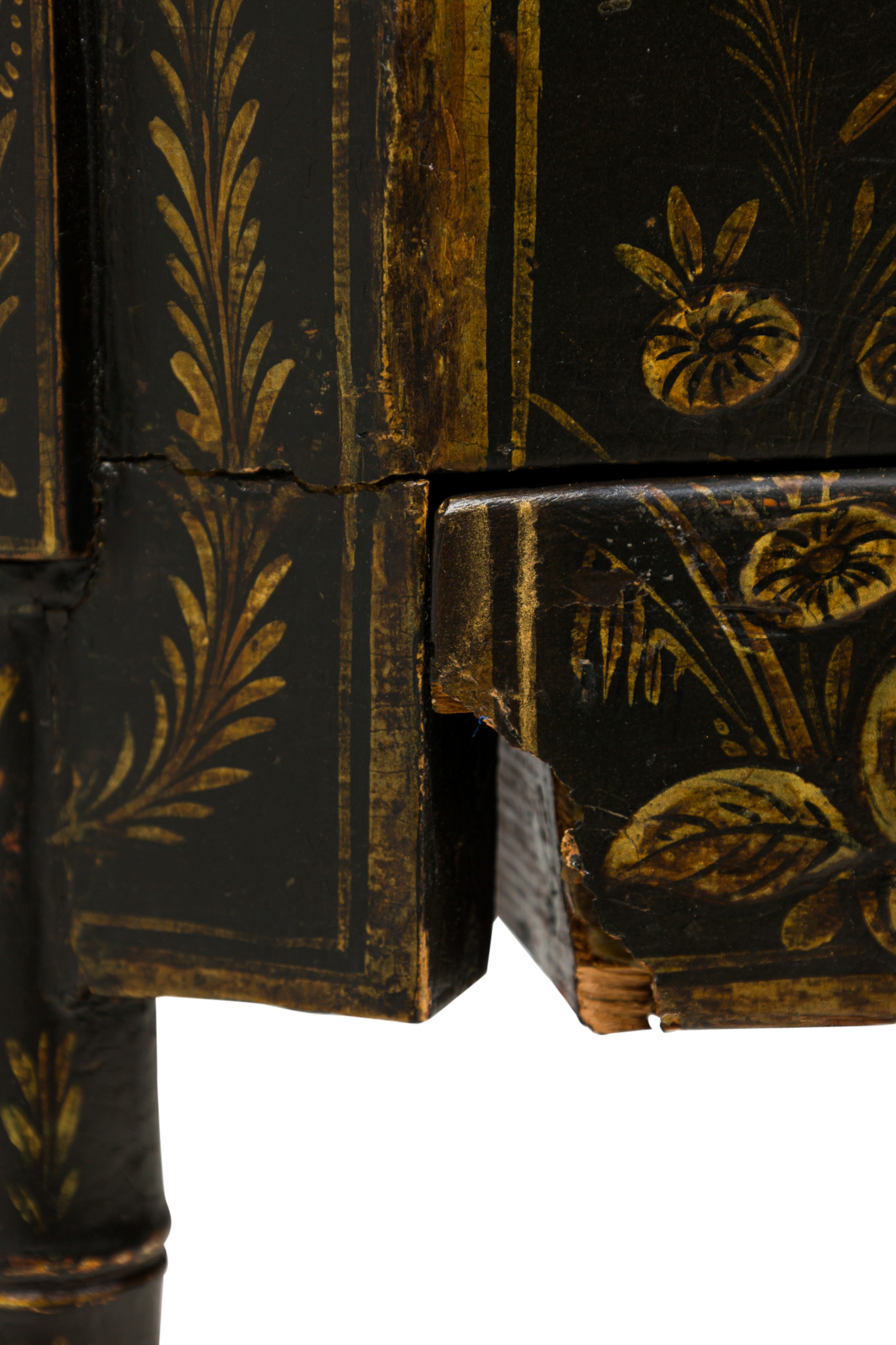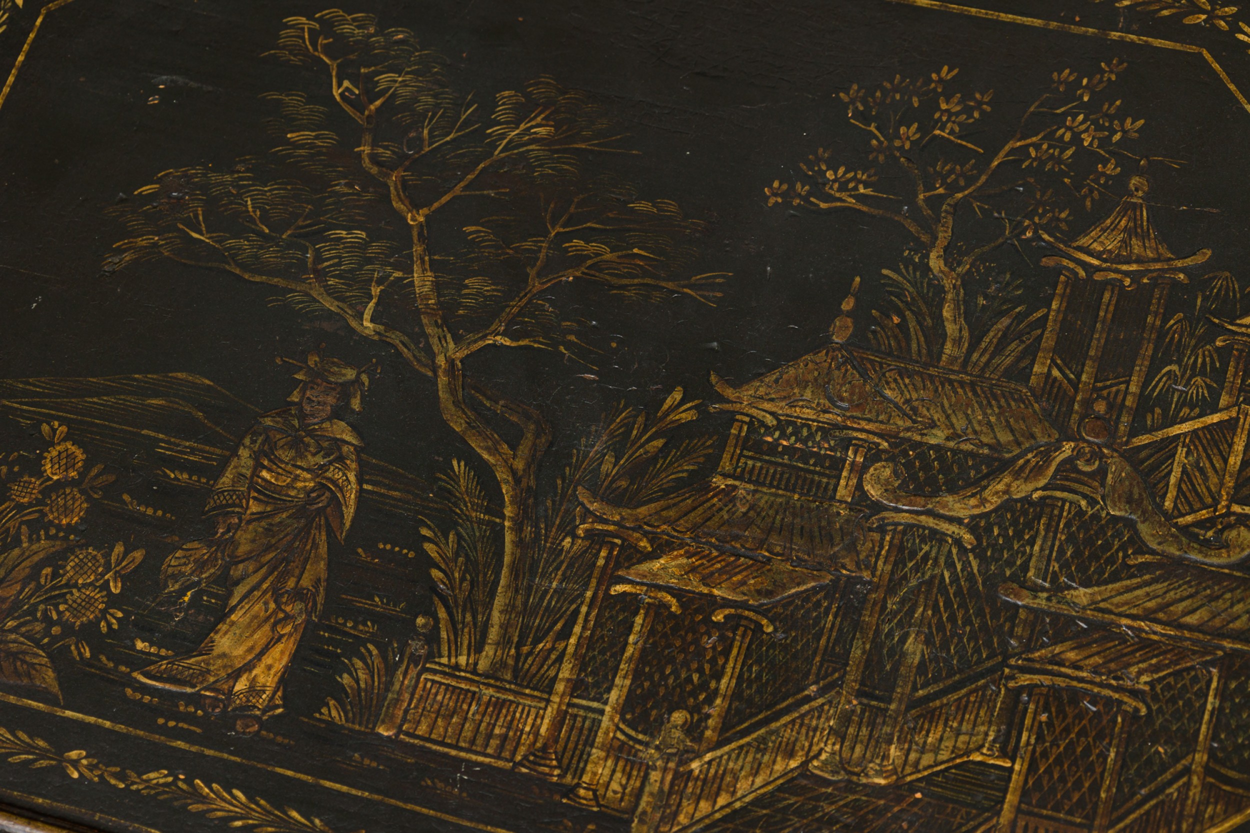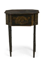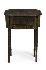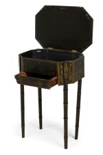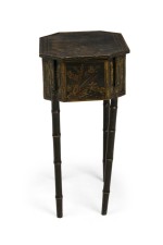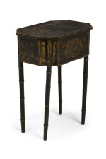 English George III Black Japanned Multi-Compartment Work End Side Table