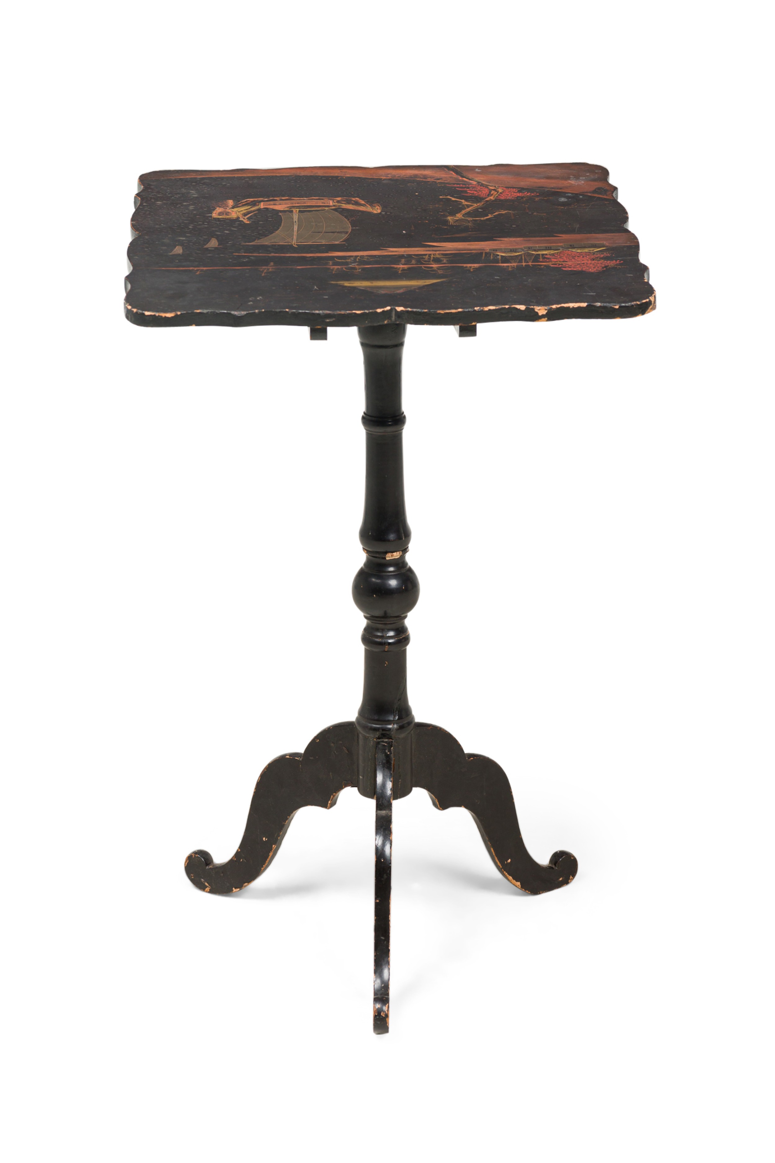English George III Japanned Pastoral Scene Tilt Top End / Side Table
