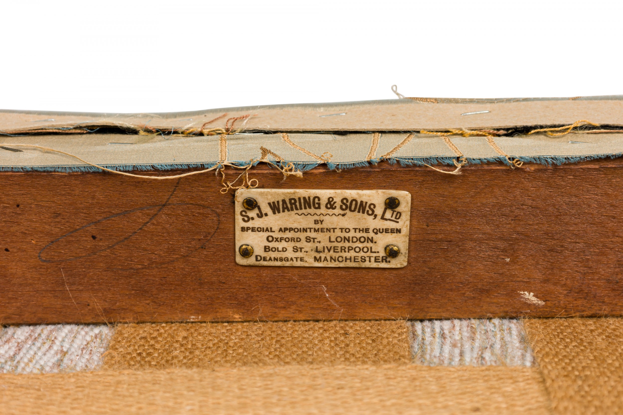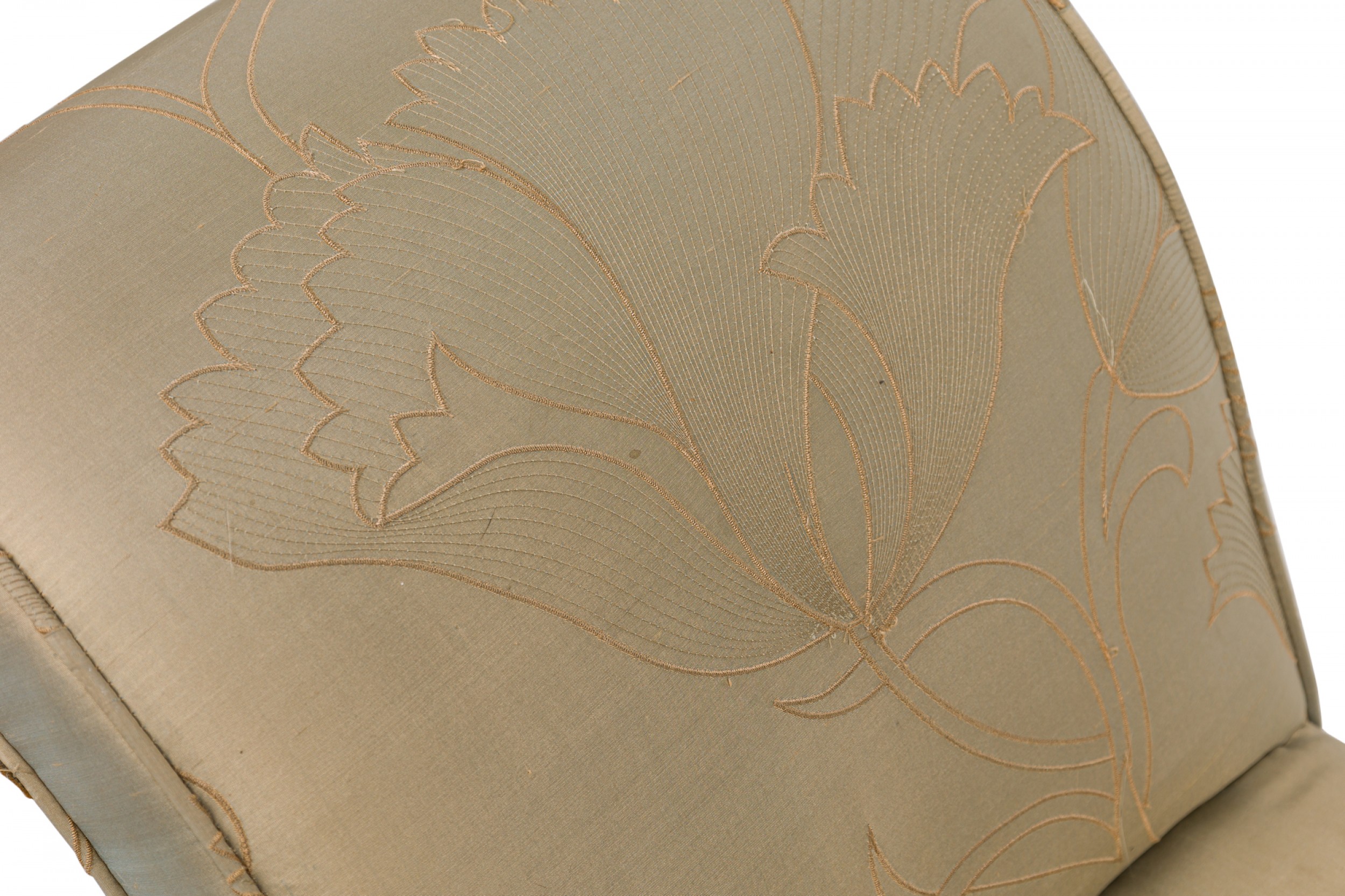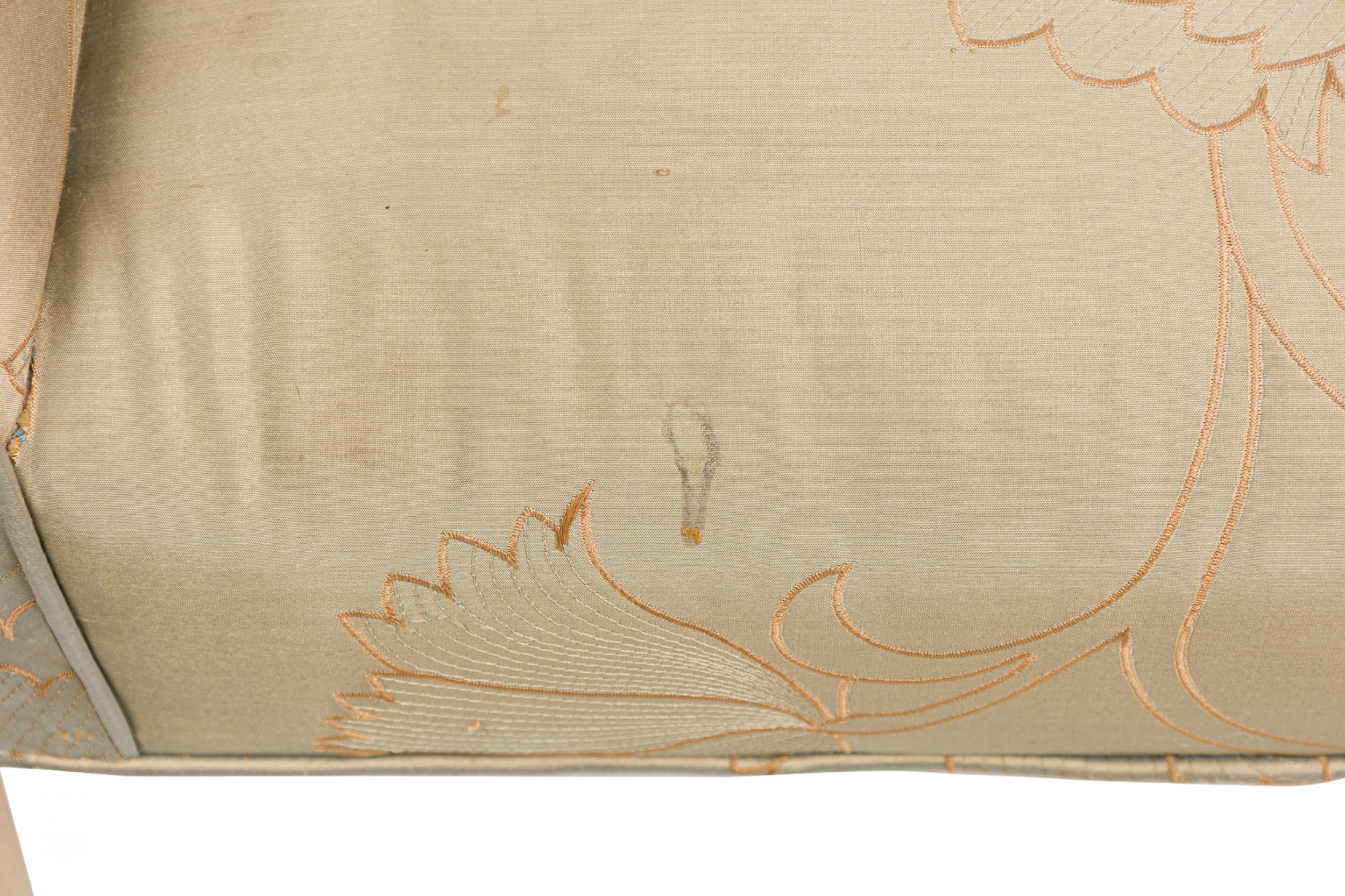 Style: English Materials & Techniques: Fabric, giltwood, painted, upholstered, wood Category: Seating Good; Wear consistent with age and use