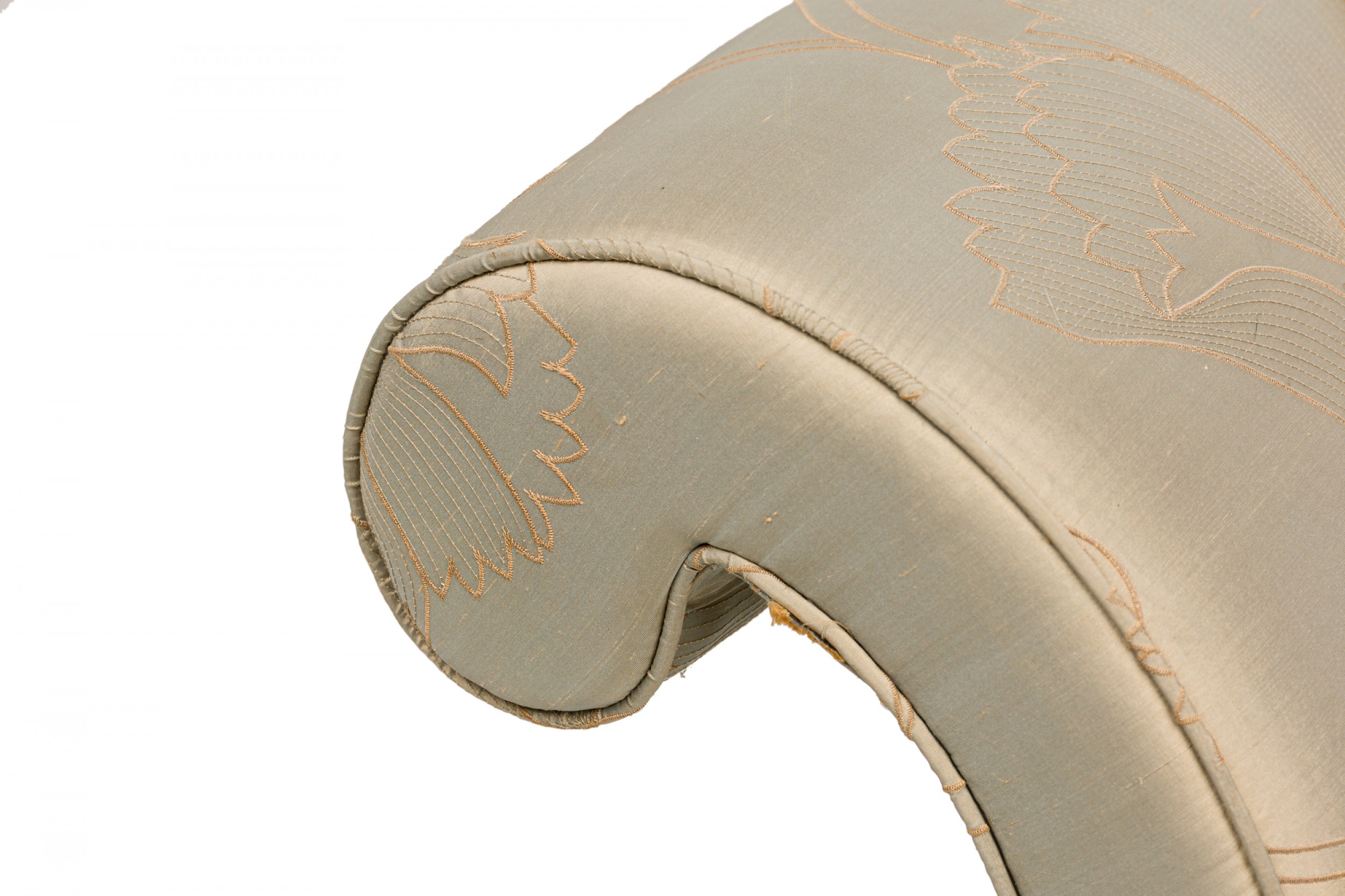 English George III Parcel Gilt Painted Gray Embroidered Satin Upholstered Window Seat