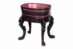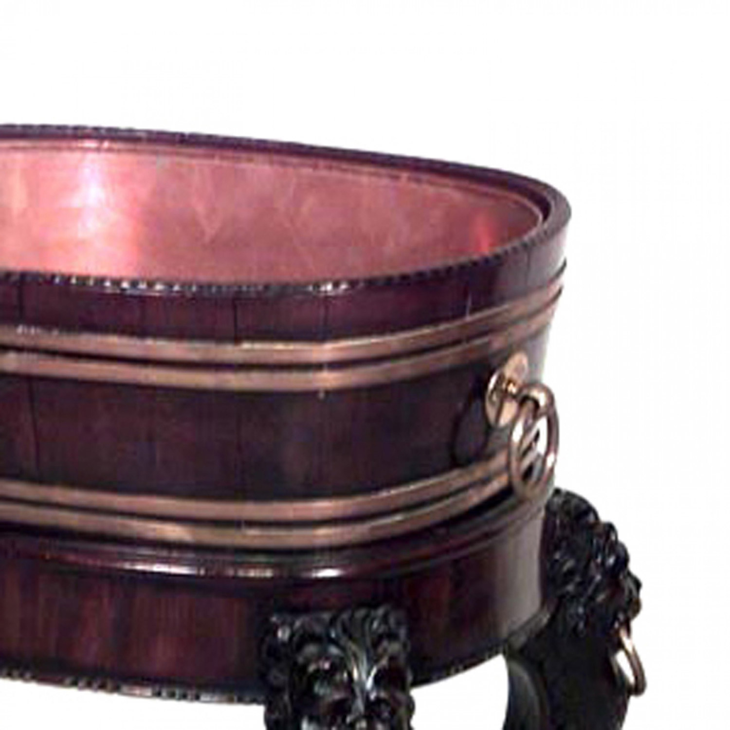 English Georgian style (19th Cent) mahogany oval fernery/planter with lion carving on legs and brass trim with copper liner.