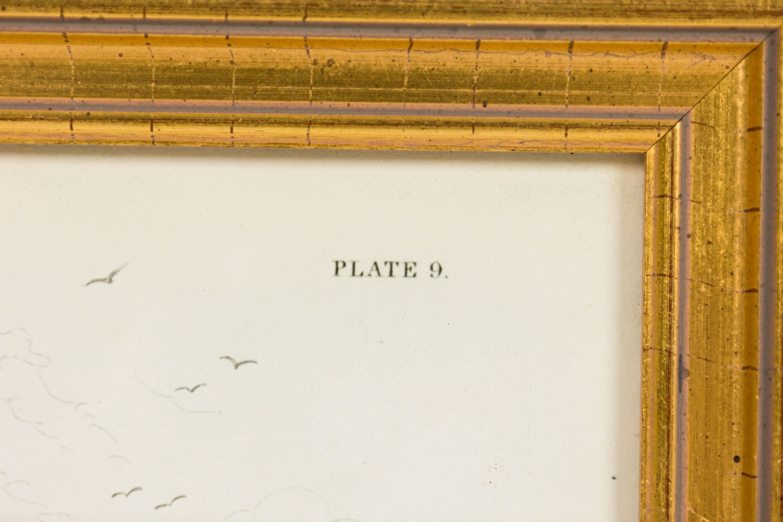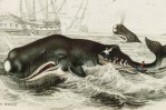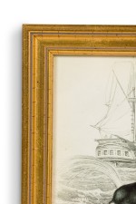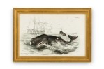 English (19th Century) gold framed lithograph titled "The Spermaceti Whale" being attacked by hunters (Beale) (Simiar to: NWL7290B).